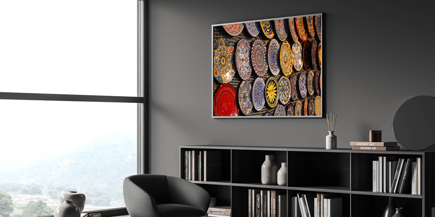 Celebrate the rich artistic traditions of Jerusalem with this colorful ceramic plate display, capturing the intricate craftsmanship of the region’s artisans. This art piece brings the spirit of Jerusalem’s markets to life in a unique and visually striking way.