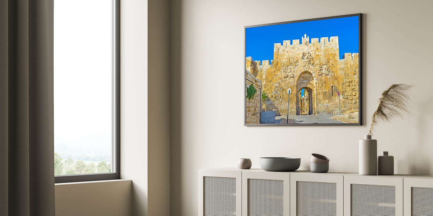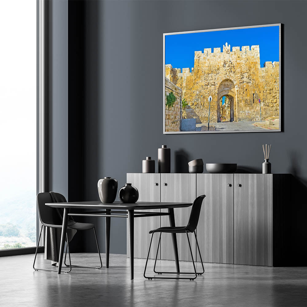 This piece brings Jerusalem's history and architectural beauty into your space, making it a perfect conversation starter. Whether you’re decorating a living room, study, or office, this high-quality artwork captures the essence of one of the world's most significant cities.