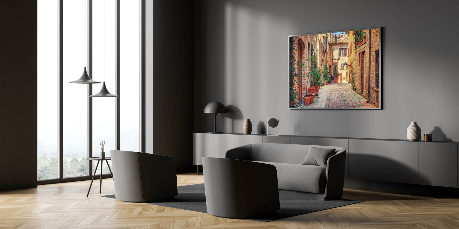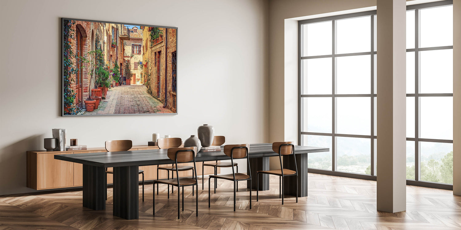 This Tuscany panorama print will enhance any room with its tranquil and inviting atmosphere, offering a glimpse of the quiet charm found in Tuscany’s picturesque streets. Whether for a centerpiece or a subtle accent, this Italy scenic wall decor will bring warmth and character to your home.