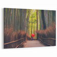 Bamboo Forest Path Art Print – Serene Japanese Scenery with Red Umbrella