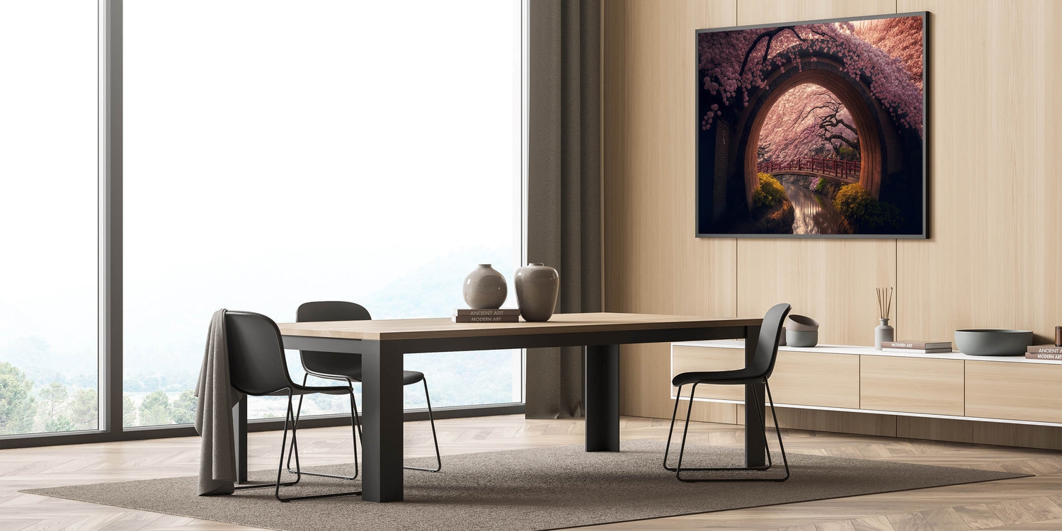 Transform your space with this stunning artwork that blends the harmony of nature and architecture, perfect for creating a calming and visually captivating ambiance.