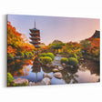 Experience the Tranquility of Kyoto’s Autumn Gardens This captivating Kyoto wall art showcases the peaceful beauty of a traditional Japanese garden in autumn. The towering pagoda stands majestically in the background, reflected in the calm waters of a serene pond. The vibrant autumn leaves in shades of red, orange, and yellow create a picturesque contrast against the greenery, embodying the essence of Kyoto's fall season. This artwork is ideal for those who appreciate nature’s beauty and the elegance of Japanese architecture.