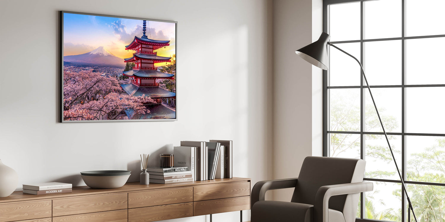 - Premium Japan landscape canvas print available in stretched canvas, framed canvas, and acrylic glass.