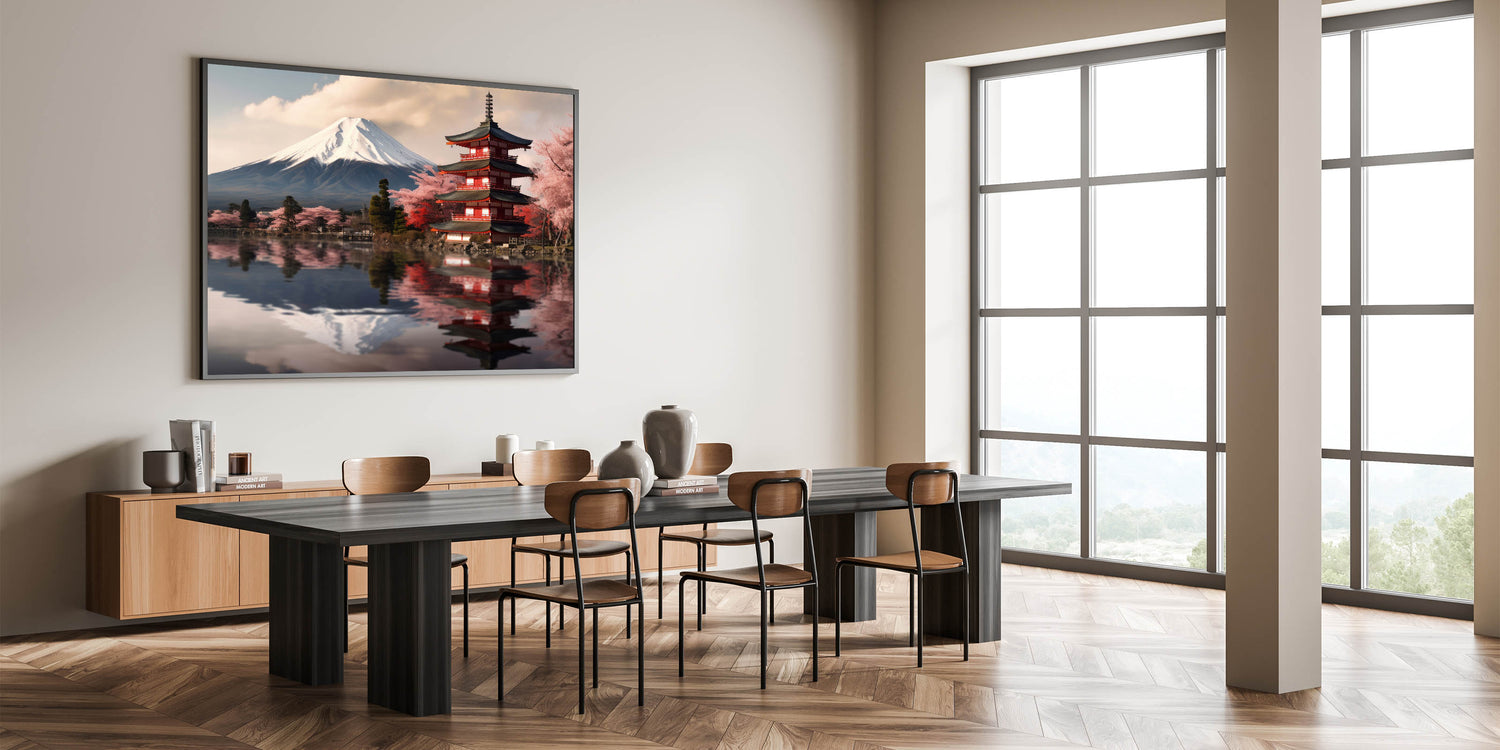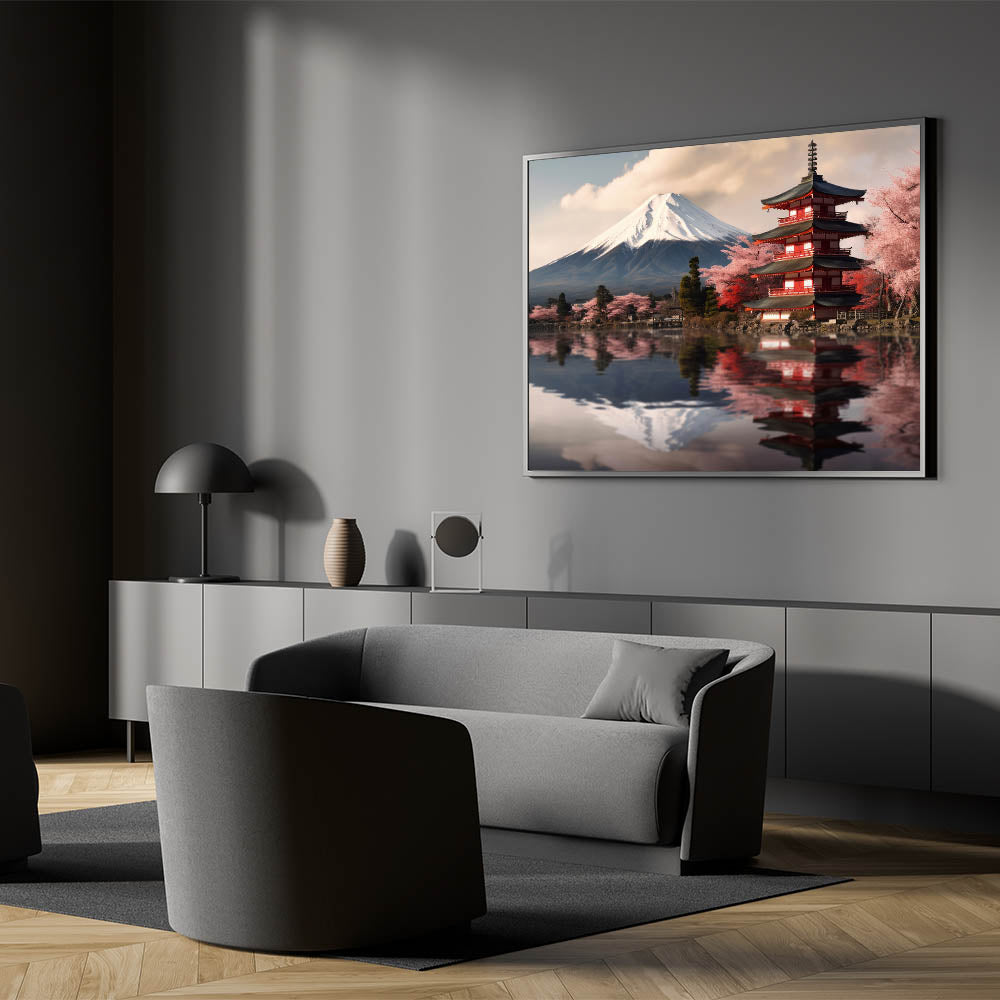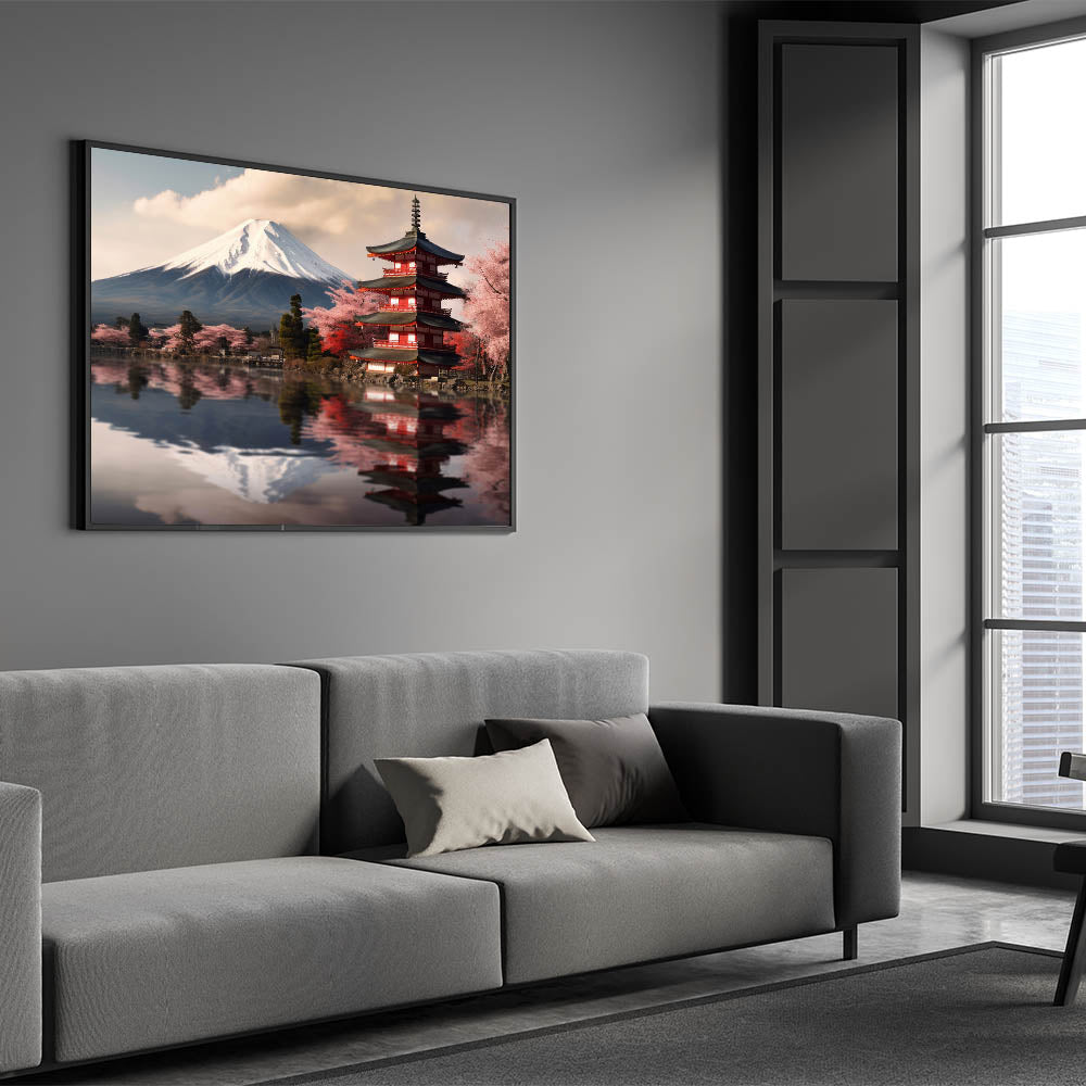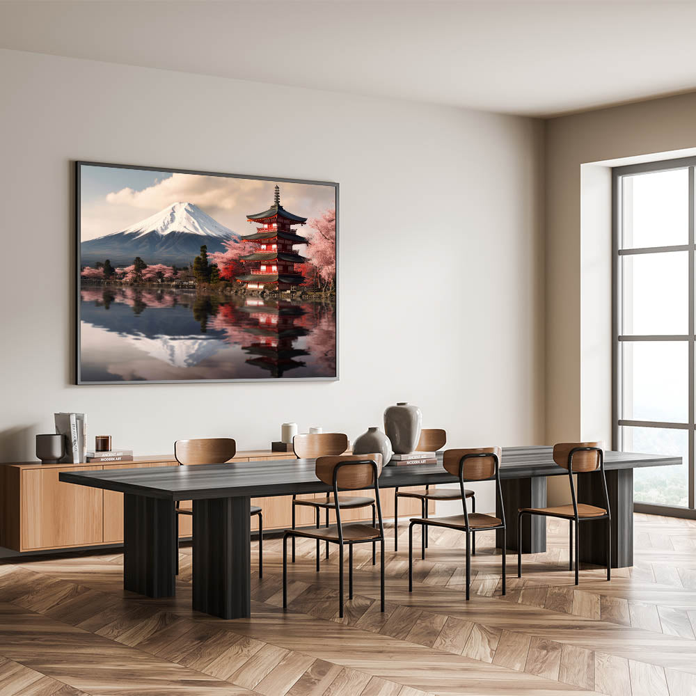 Mount Fuji Pagoda Reflection Canvas - Japanese Scenic Art for Home Decor