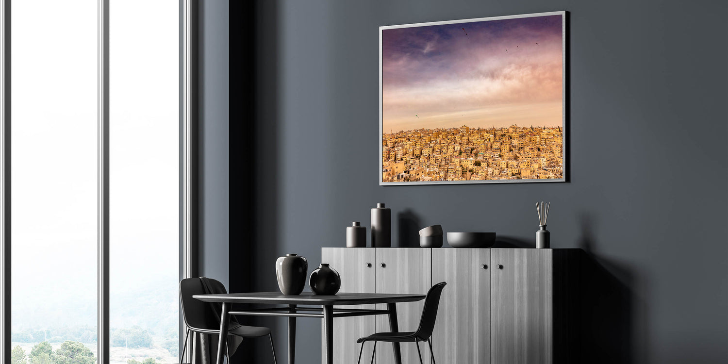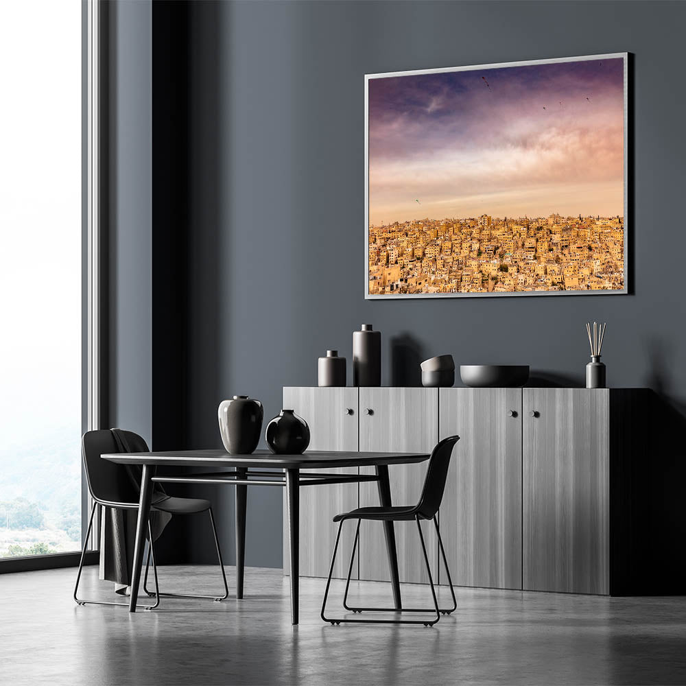 - High-definition print that brings out the detailed textures and soft color palette of Amman’s skyline