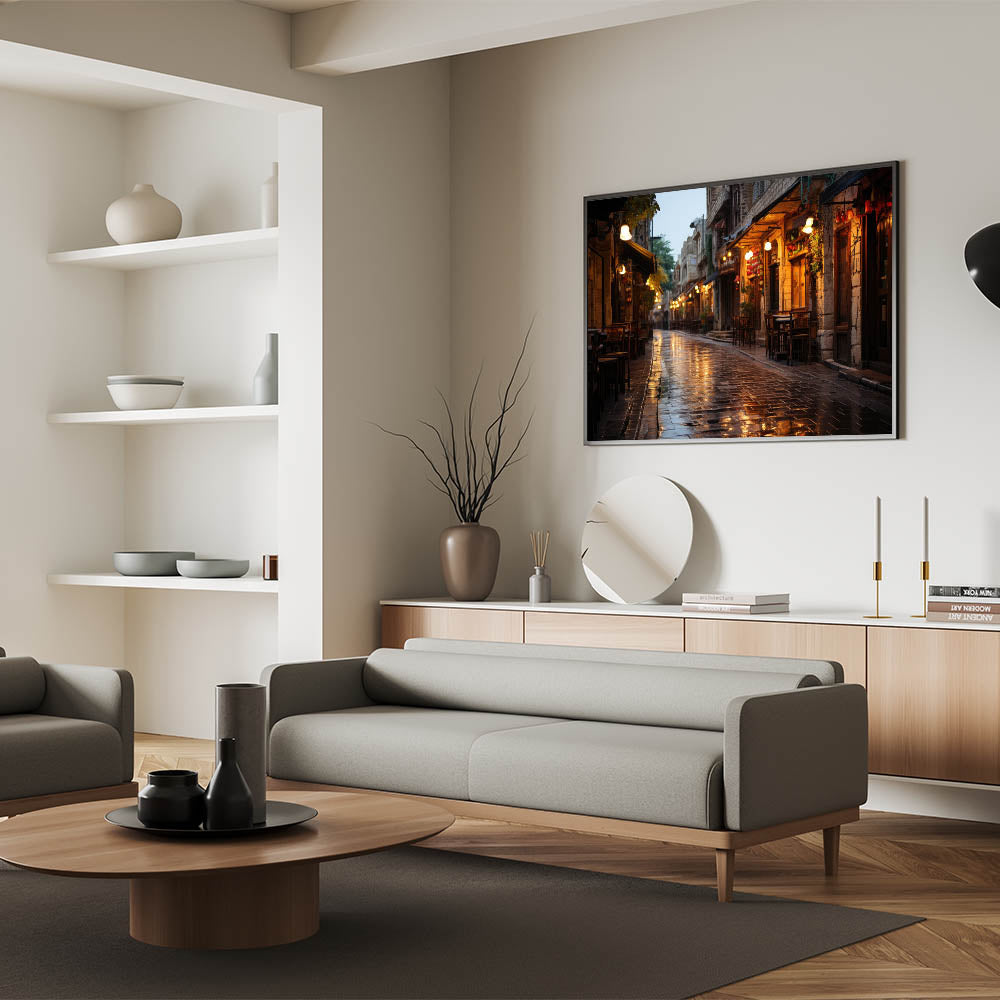 • High-definition print that brings out the detailed textures and rich, glowing colors of the street
