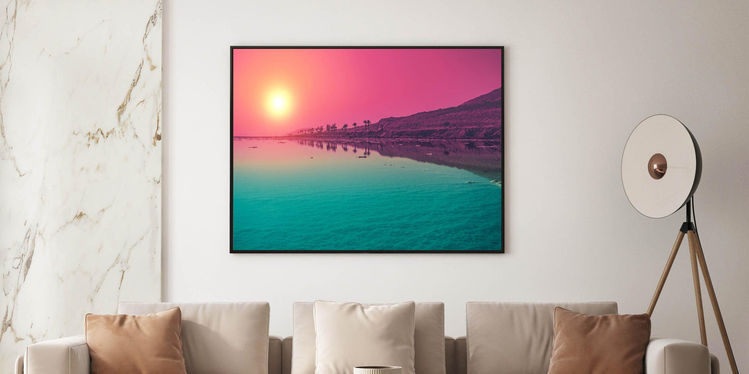 This unique art from Jordan combines the natural beauty of the Dead Sea with the stunning sunset palette, making it a perfect addition for those looking to bring Middle Eastern charm and vibrant color into their living space. The high-quality print will be a standout piece in any setting, capturing the essence of Jordan’s stunning landscapes.