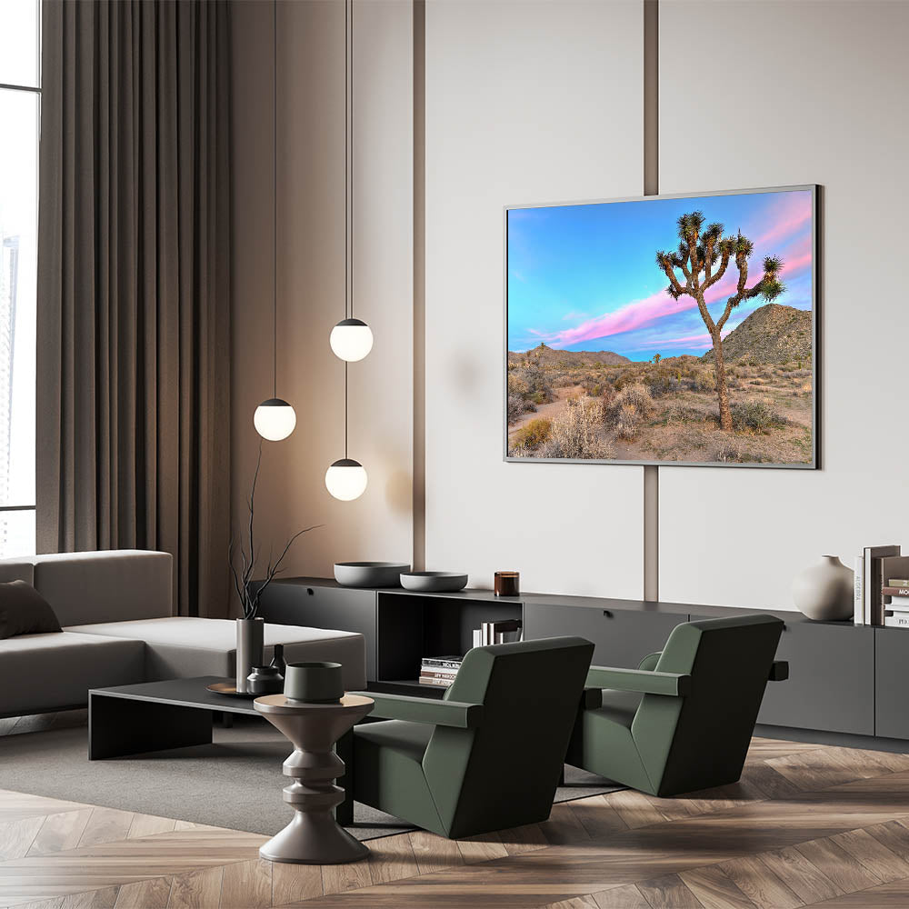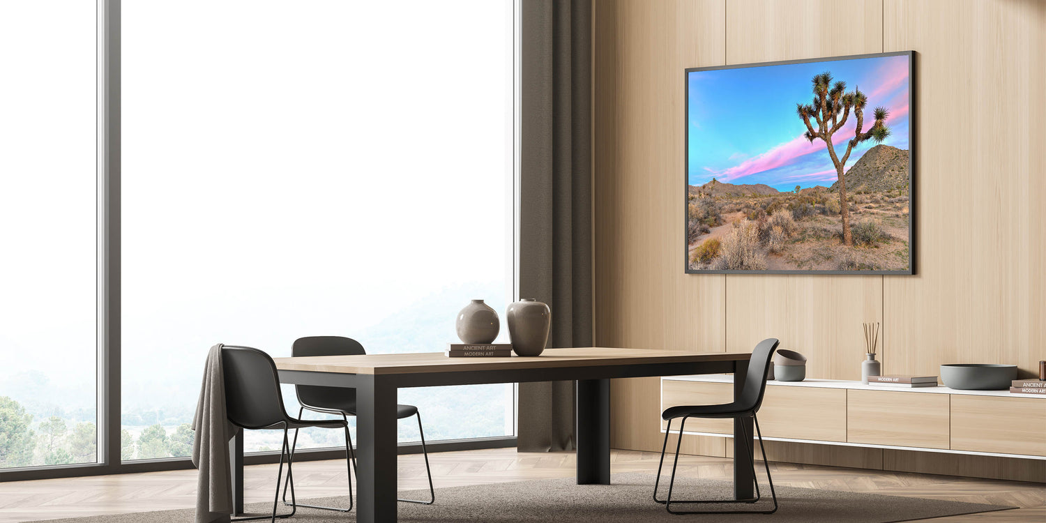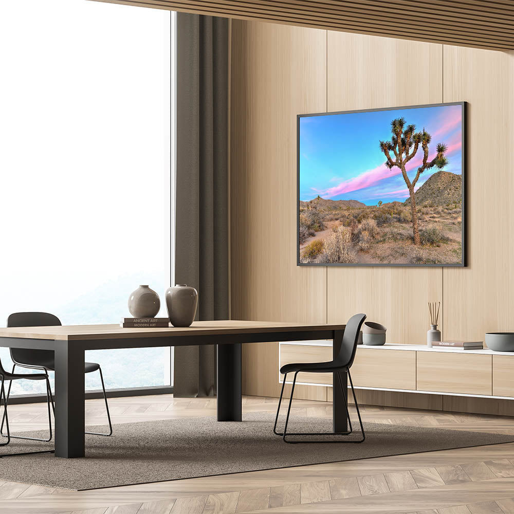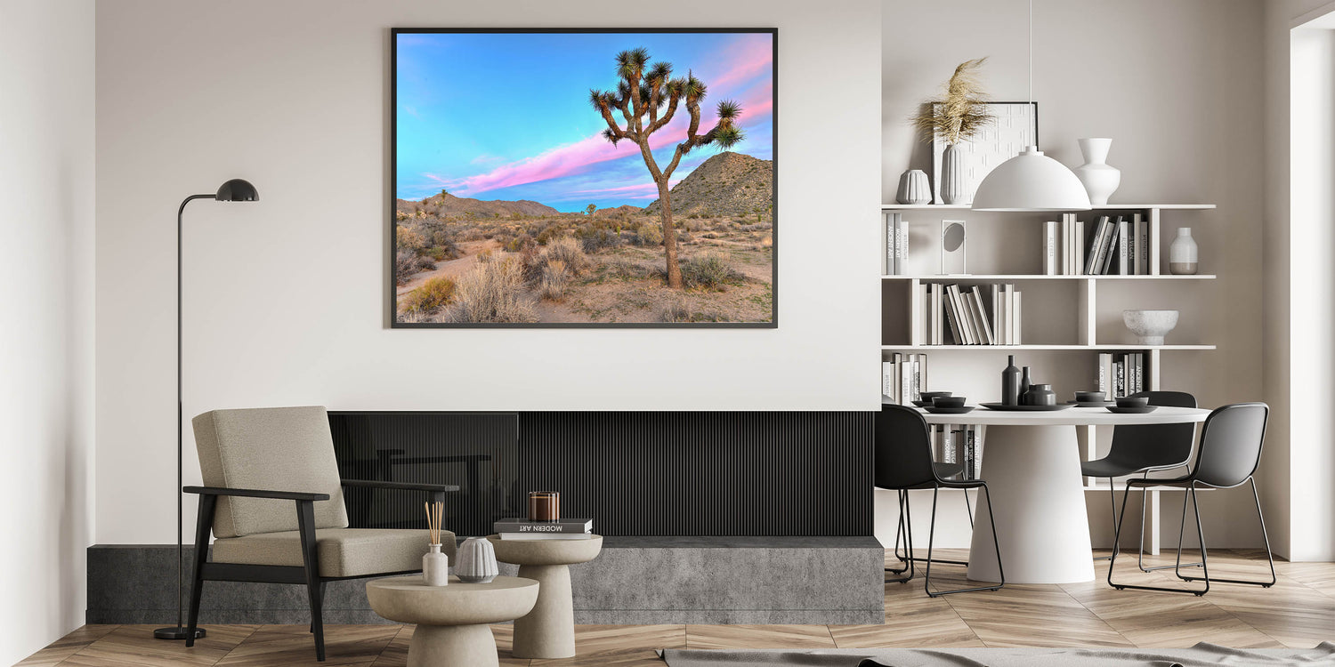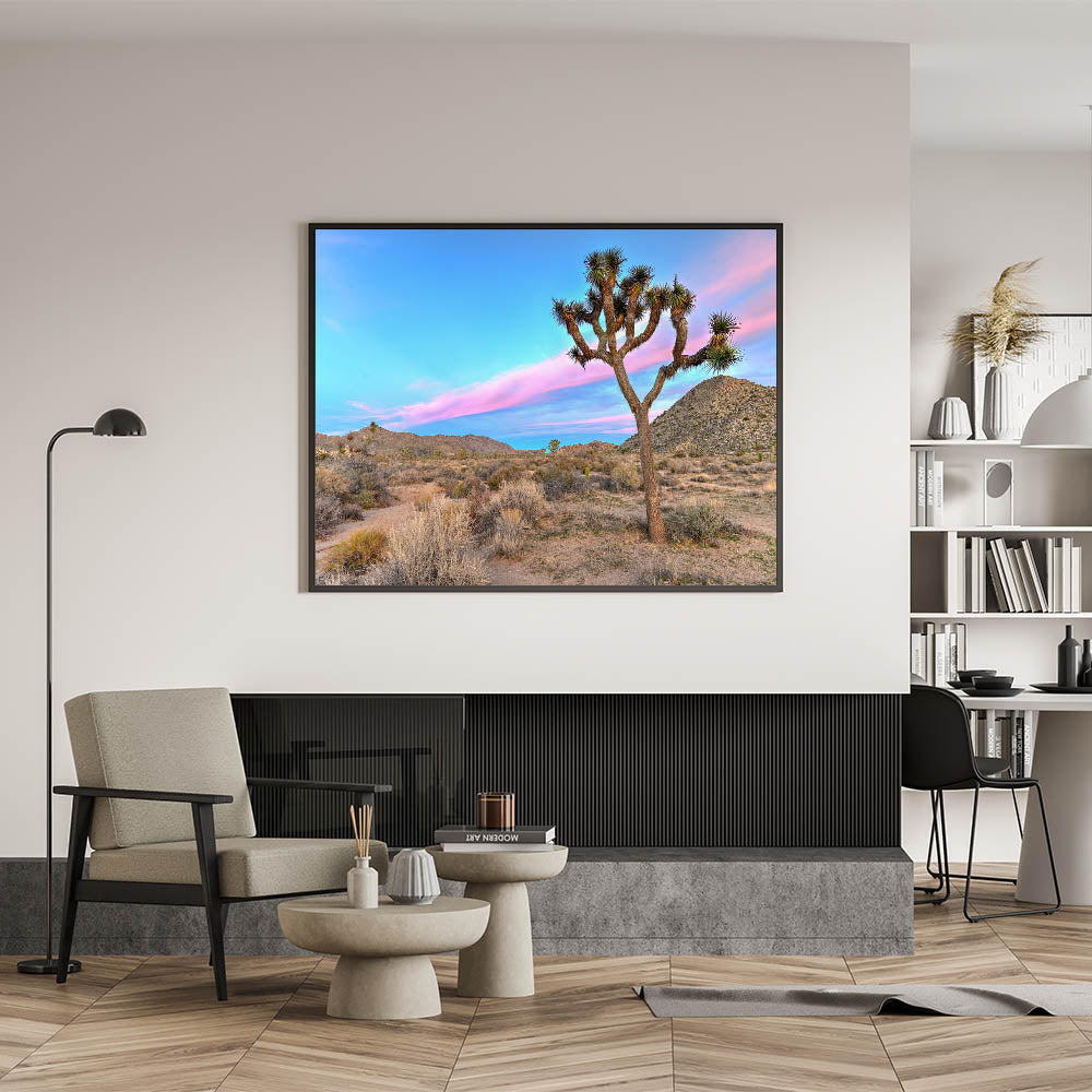 Whether you're a nature lover or simply looking to bring a calming desert landscape into your home or office, this Joshua Tree desert vista art offers a timeless and elegant addition to any space.