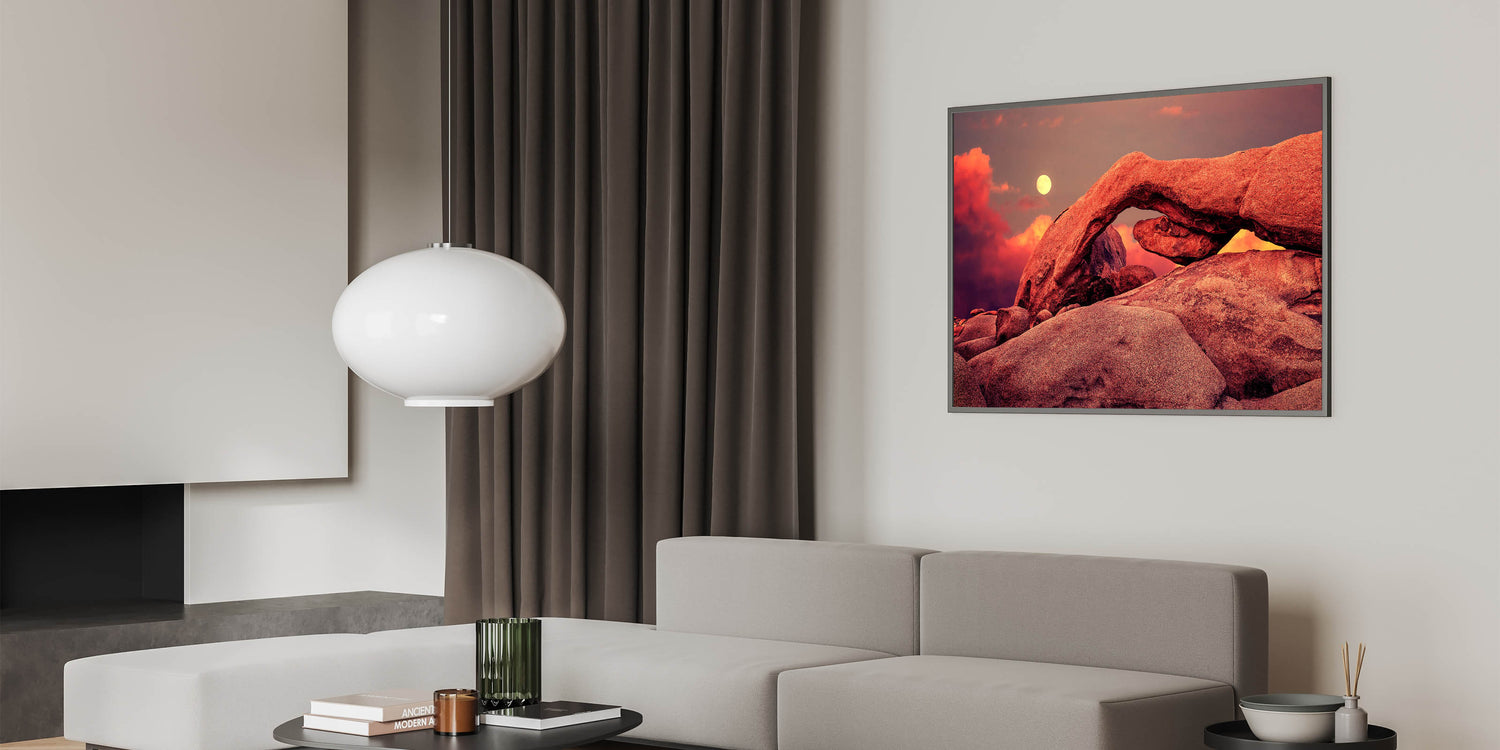 - Material options: Choose from stretched canvas, framed canvas, acrylic glass, framed acrylic, and various print styles.