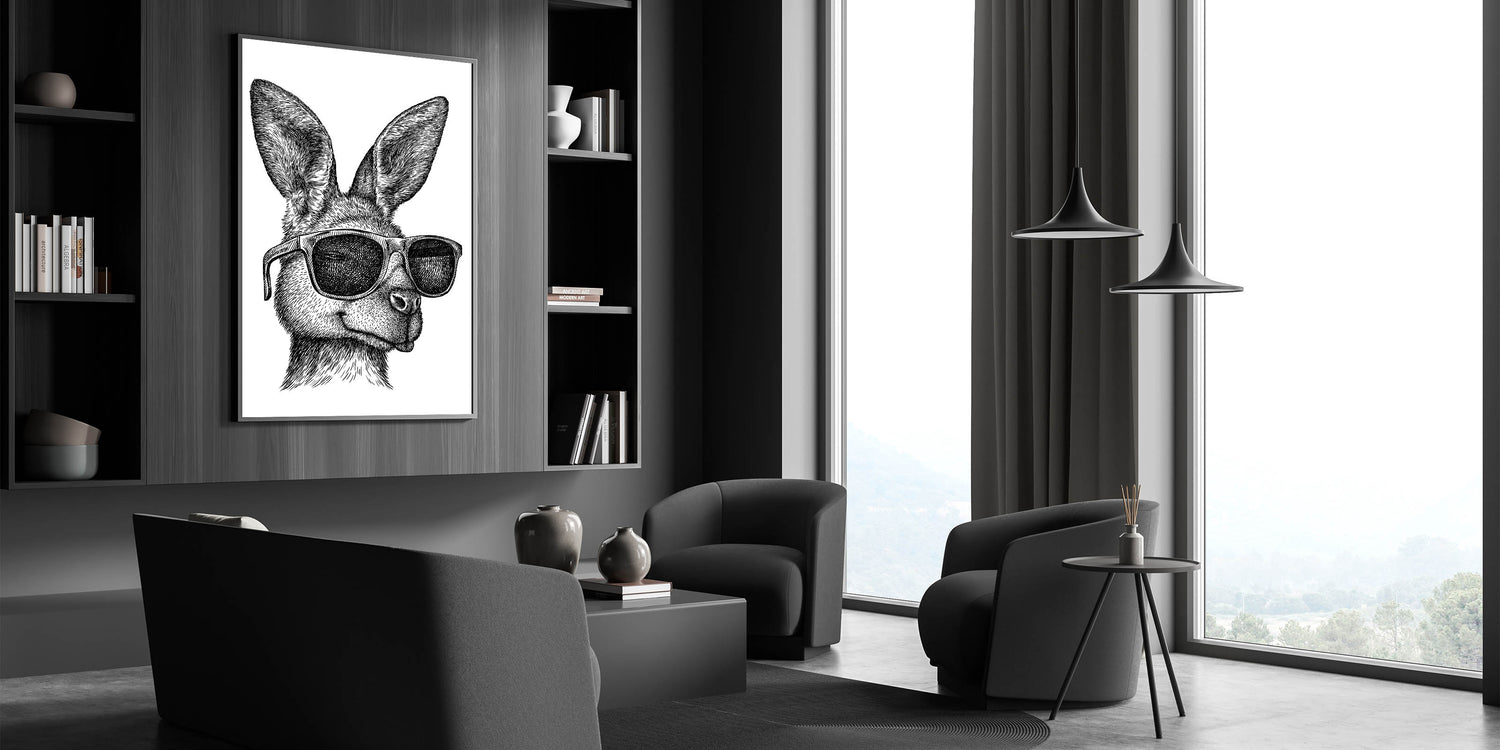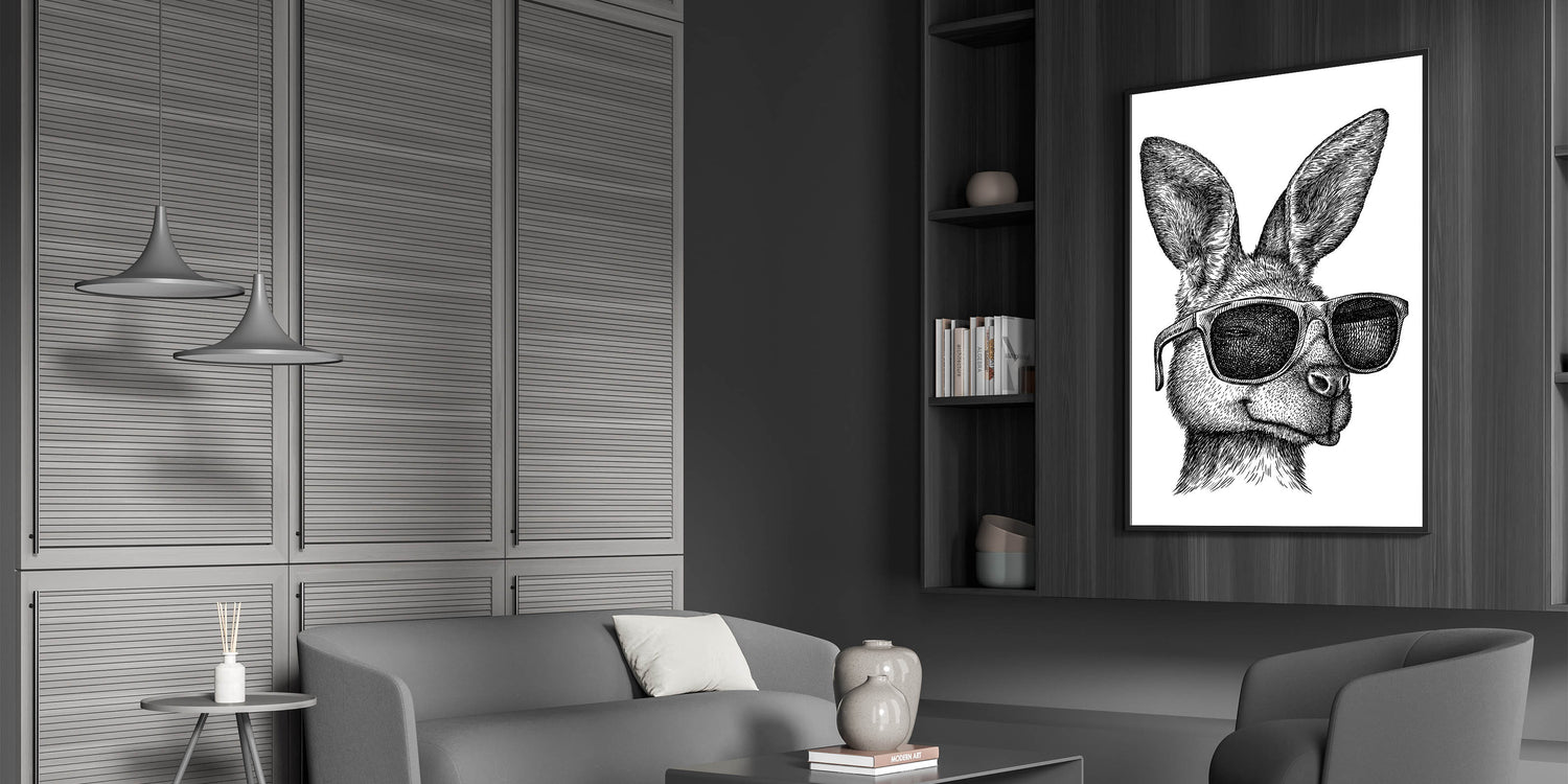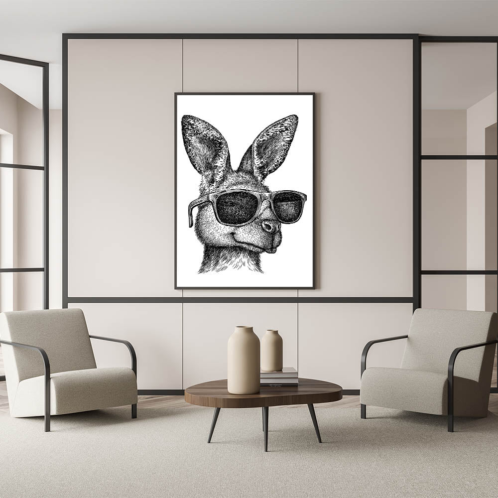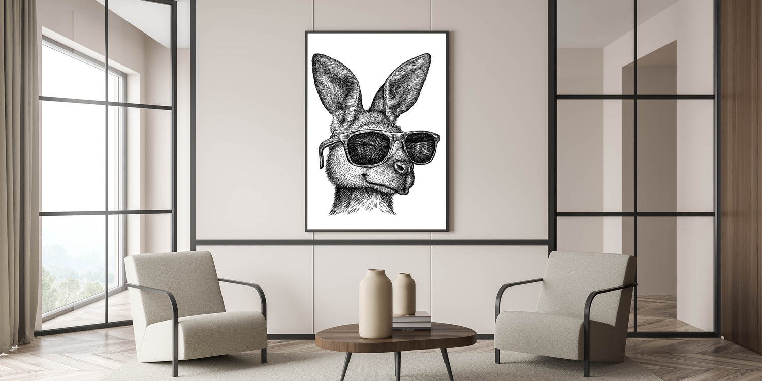 Add a playful touch to your home decor with this stylish and quirky kangaroo wall art. This unique piece features a hand-drawn kangaroo sporting cool sunglasses, blending the wild charm of Australian wildlife with a modern, trendy twist. Perfect for adding character and a bit of humor to any room, this artwork is ideal for those who appreciate a blend of art and whimsy in their space.