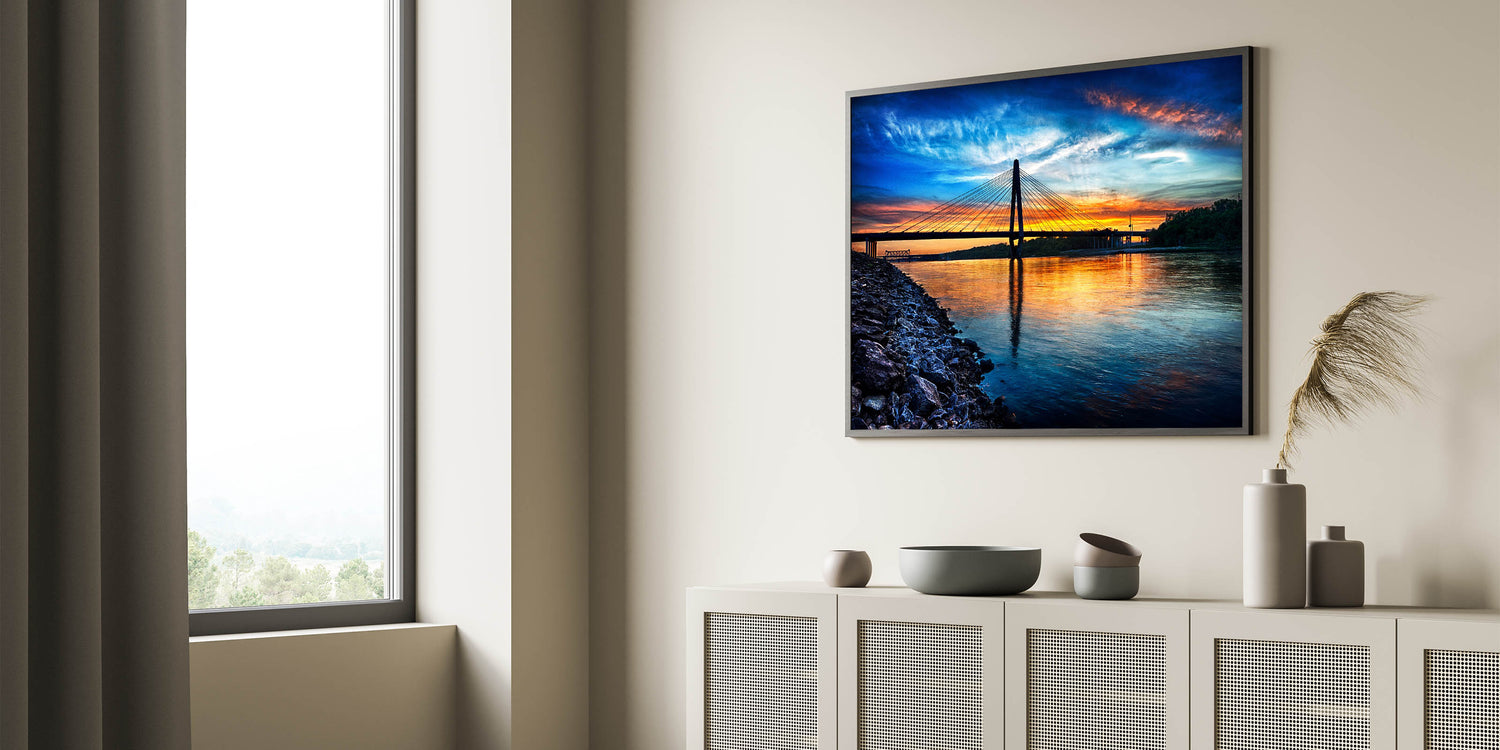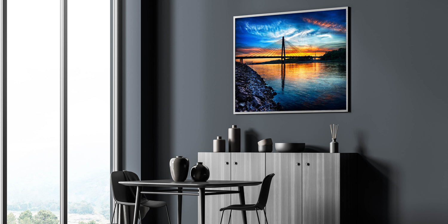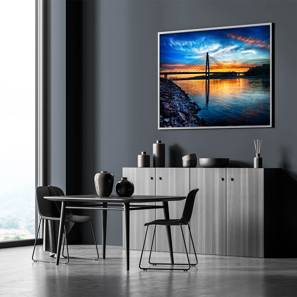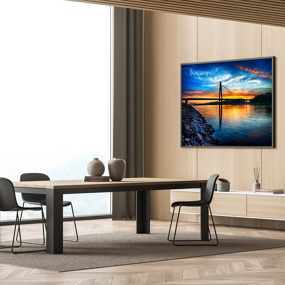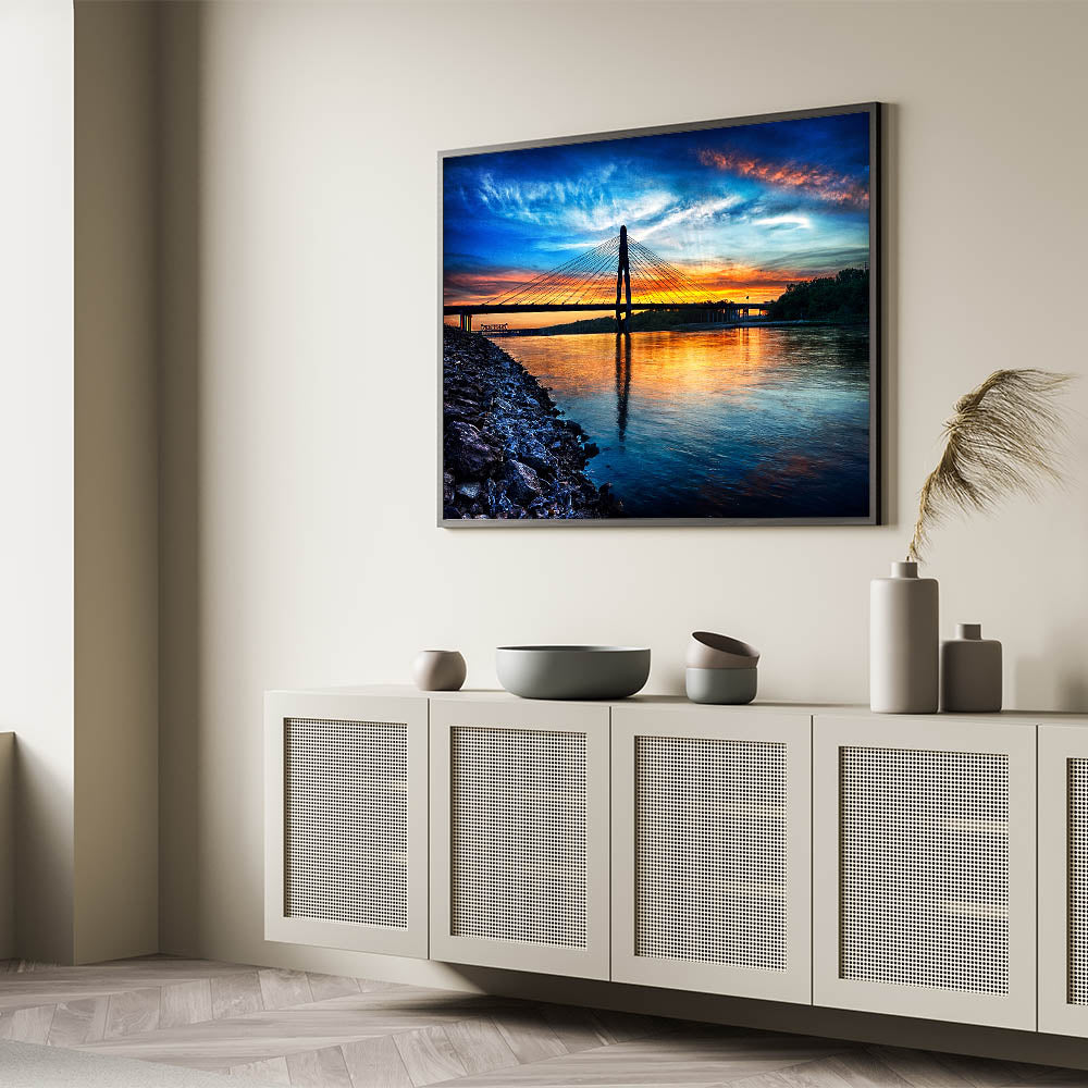 • High-Definition Sunset Scene: Vivid colors and fine details capture the beauty of the sunset and bridge reflection.