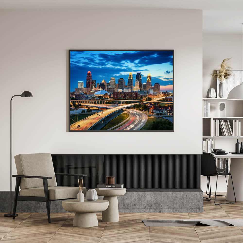 • High-Quality, Vivid Detail: The high-resolution print captures the intricate details of Kansas City's skyline and the dynamic movement of city lights.