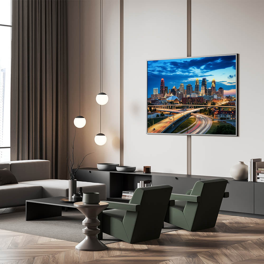 This Kansas City skyline wall art encapsulates the energy and beauty of Missouri’s urban nightlife. Available in multiple formats, this piece makes a captivating focal point for any room.