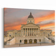 Transform your space with this elegant Kansas City skyline art, featuring the iconic Kansas Capitol Building illuminated by a breathtaking sunset. The warm tones of the sunset sky contrast beautifully with the classic architecture of the Capitol, making this Kansas photography print a captivating addition to any room. This piece of scenic Kansas artwork perfectly captures the historic charm of Kansas City and is ideal for home or office decor.