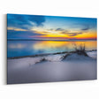 Bring a sense of calm and tranquility to your space with this Kansas nature art, featuring peaceful sand dunes and a serene sunset over a reflective lake. The gentle curves of the dunes, combined with the vivid blues, yellows, and oranges of the sky, create a harmonious scene perfect for anyone who loves scenic Kansas artwork. This Kansas landscape print captures the quiet beauty of nature, making it a perfect addition to any room in your home or office.