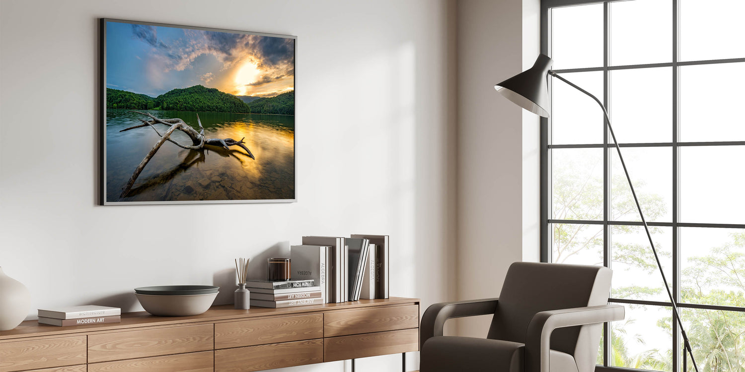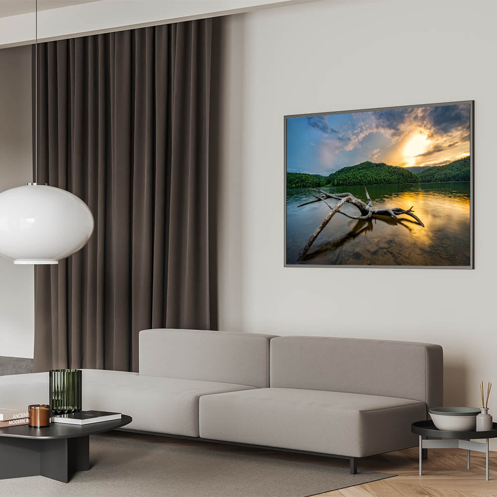 Elevate your home decor with this stunning Kentucky lakeside sunset. Whether you are a nature lover, a fan of peaceful landscapes, or simply enjoy sunsets, this artwork will add a serene and calming atmosphere to your space.