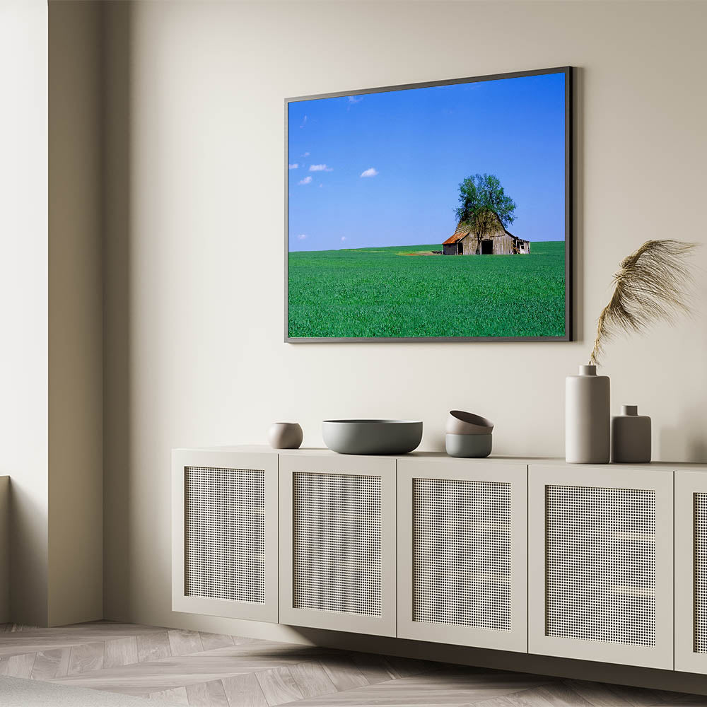 This beautiful Kentucky wall decor captures a minimalist yet profound scene from the state's countryside. It’s perfect for those seeking scenic Kentucky views, adding a calming rural charm to any living space.