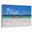 Immerse yourself in the serene beauty of Kenya's coastline with this captivating wall art. Featuring a peaceful scene of camels being led along the white sandy shores against a backdrop of vibrant blue waters, this artwork perfectly captures the essence of coastal life in Kenya. Ideal for those who appreciate both the beauty of African landscapes and the cultural significance of camels in the region, this piece adds a touch of exotic tranquility to any space.