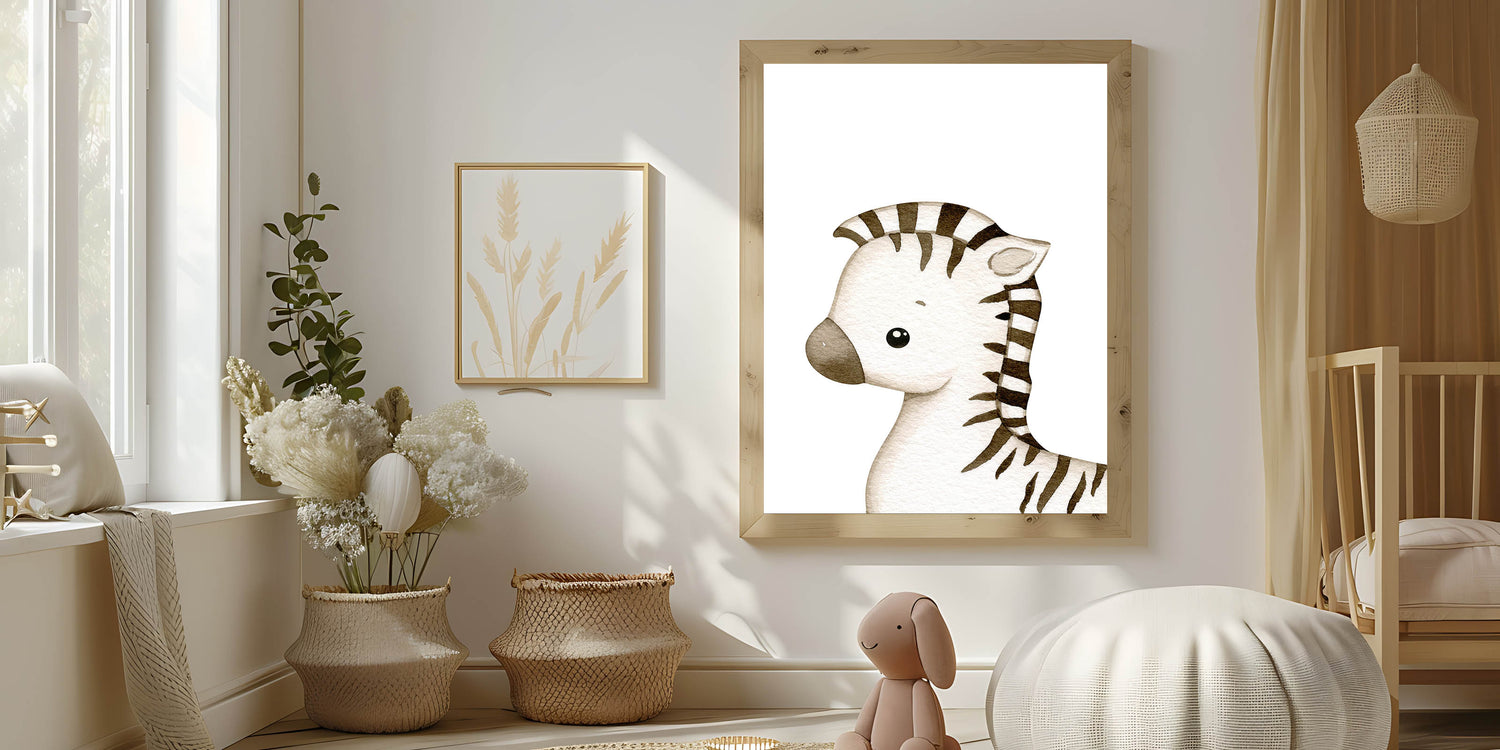 This Whimsical Children's Wall Decor is a wonderful gift for animal lovers and parents looking for a modern yet playful nursery theme. Elevate your child’s room with this Affordable Kids Room Art, bringing a cute and natural touch to any setting.