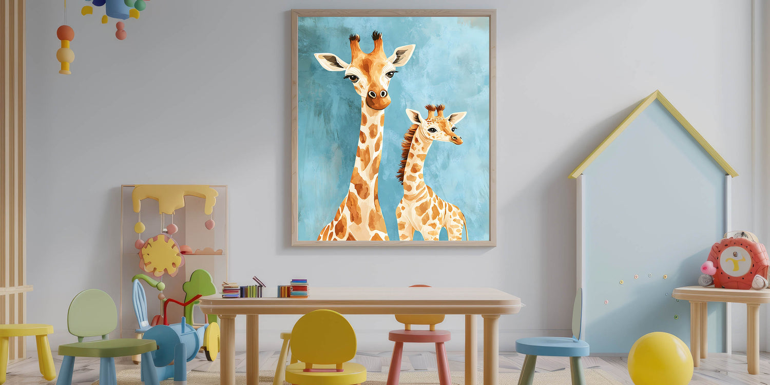 - Heartwarming Design – Features a mother and baby giraffe, symbolizing love and connection in kids' room art prints.