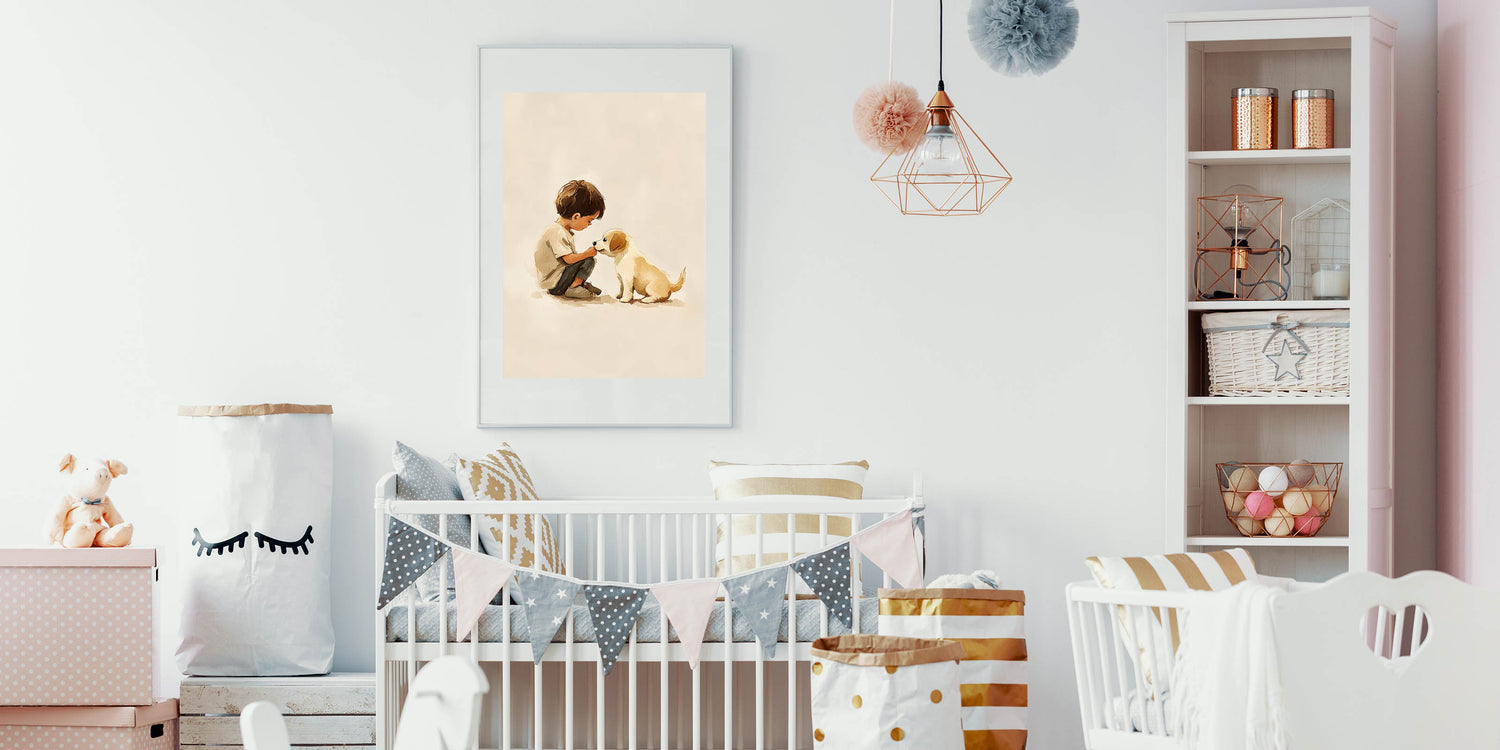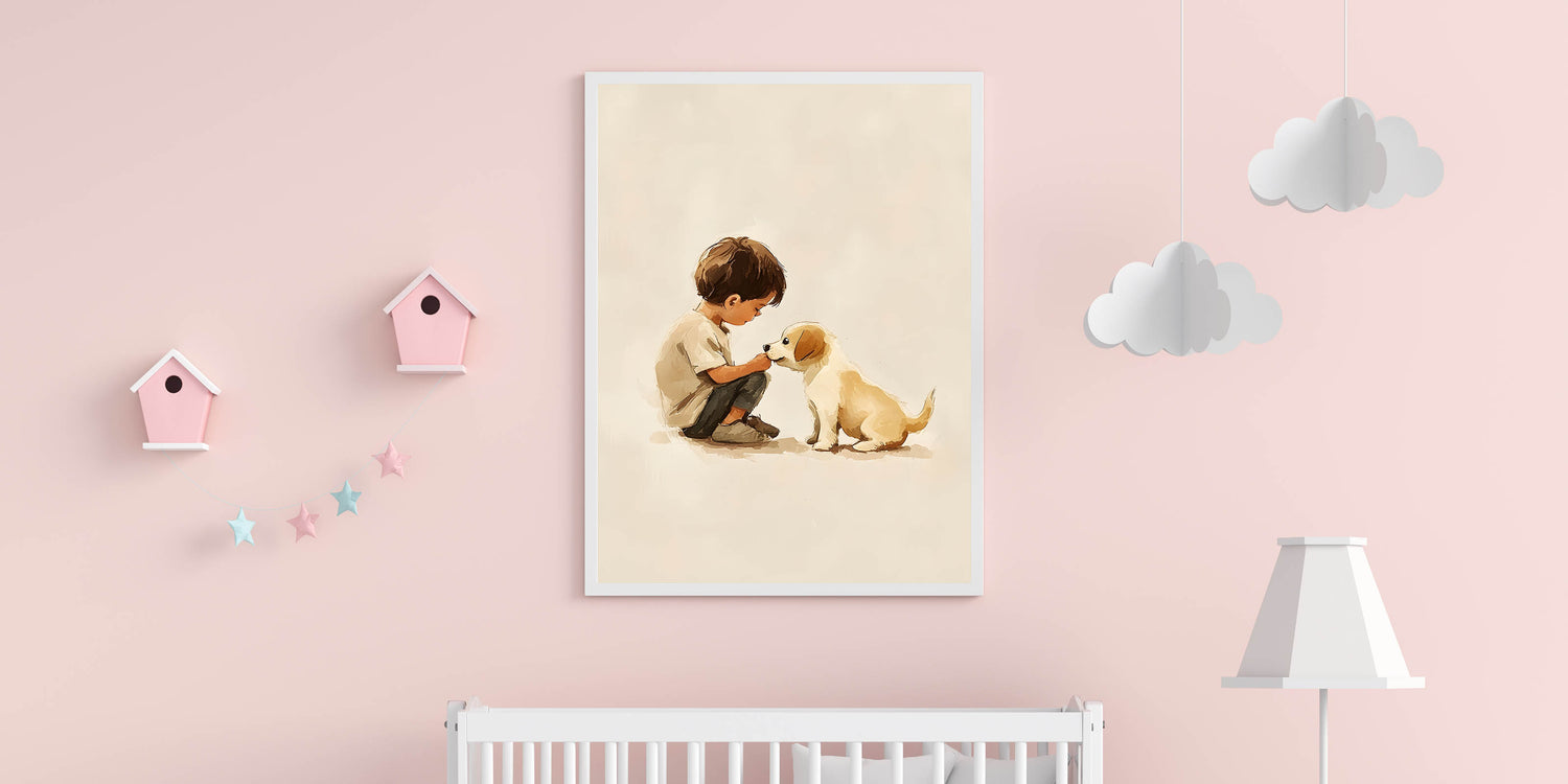 Boy and Puppy Nursery Wall Art – Kids Room & Baby Room Decor