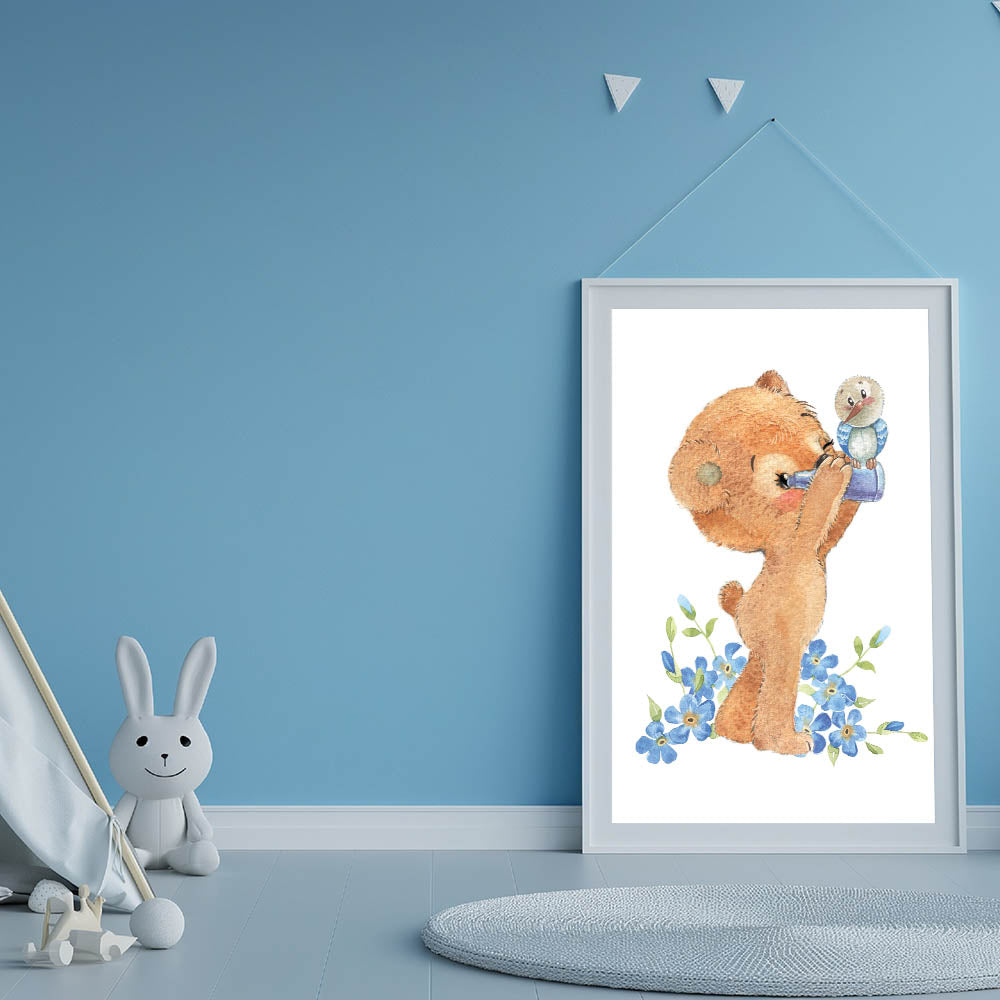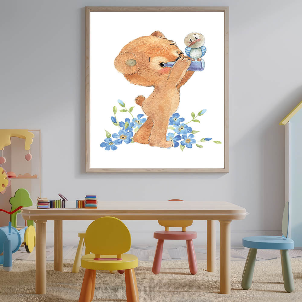 This framed nursery art is a fantastic gift for new parents or a wonderful addition to a baby’s room decor. Whether creating a nature-inspired nursery or adding a touch of curiosity, this bear and bird wall art makes the perfect choice.