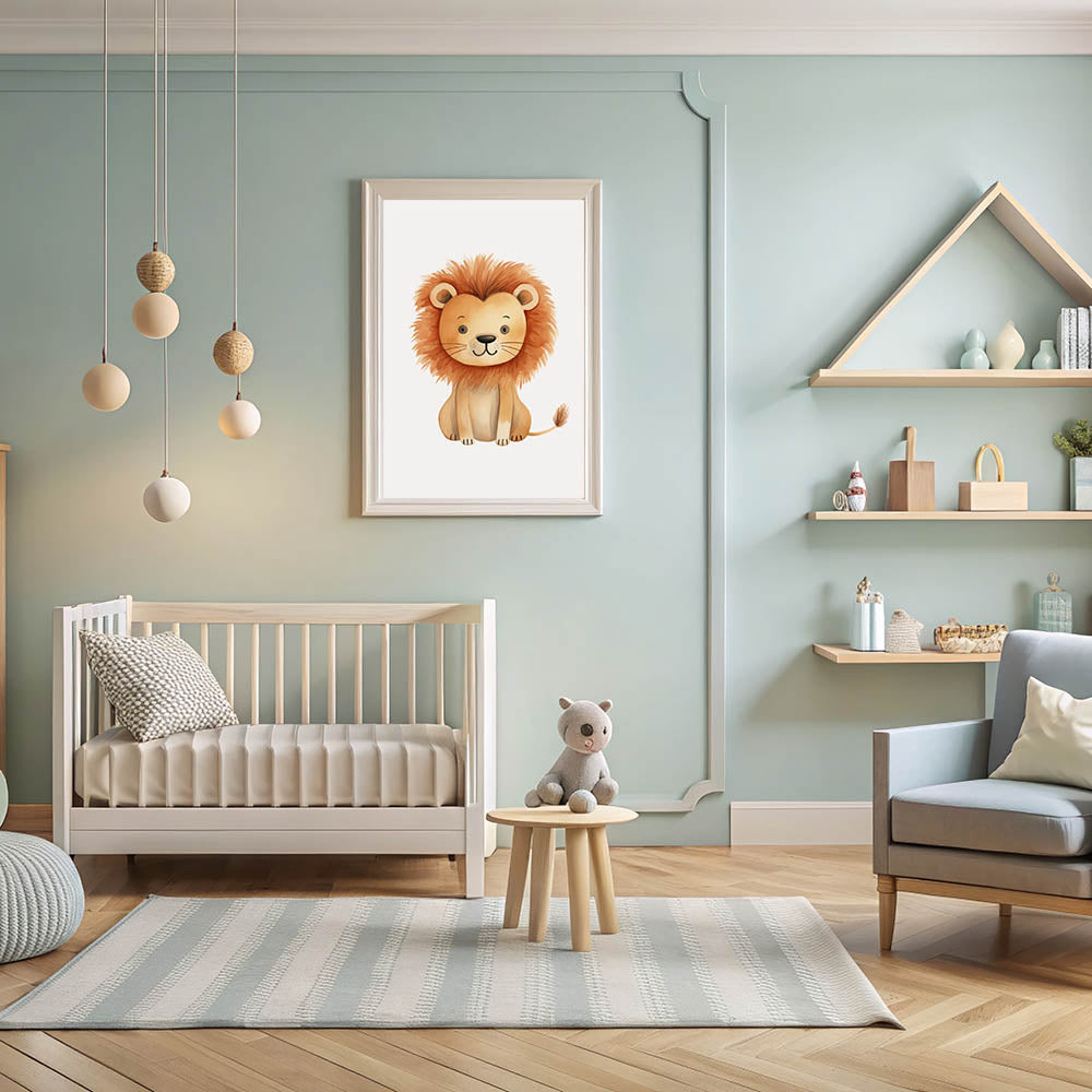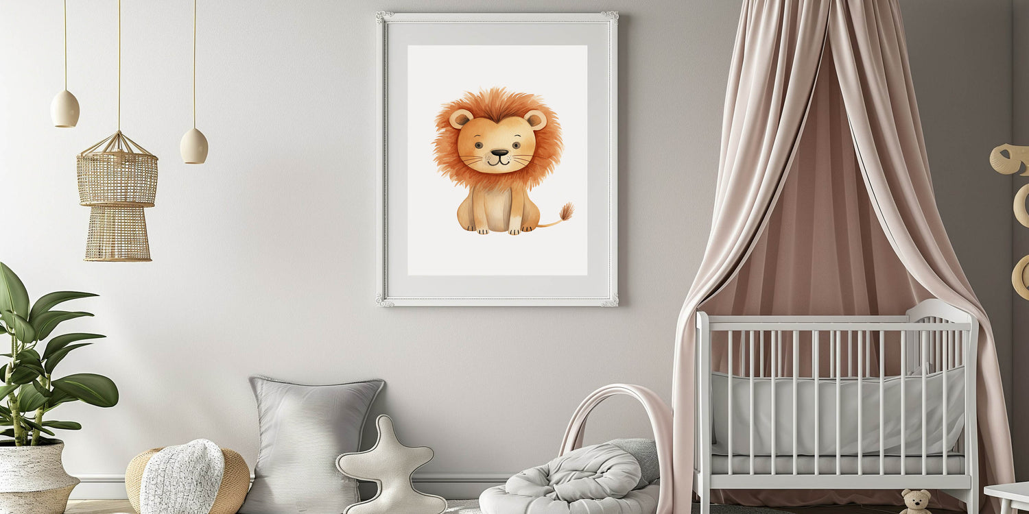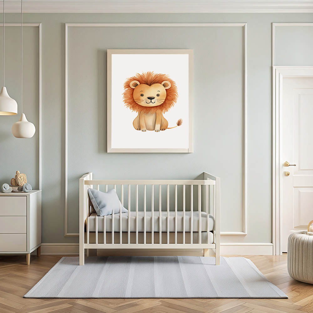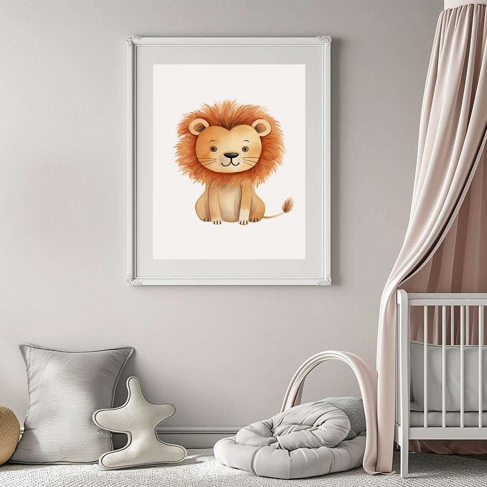 Add a touch of adventure and warmth to your child’s space with this adorable lion nursery wall art. This beautifully illustrated children's wall art features a friendly lion with a soft watercolor texture, bringing a playful yet calming atmosphere to any nursery, toddler's room, or play area.