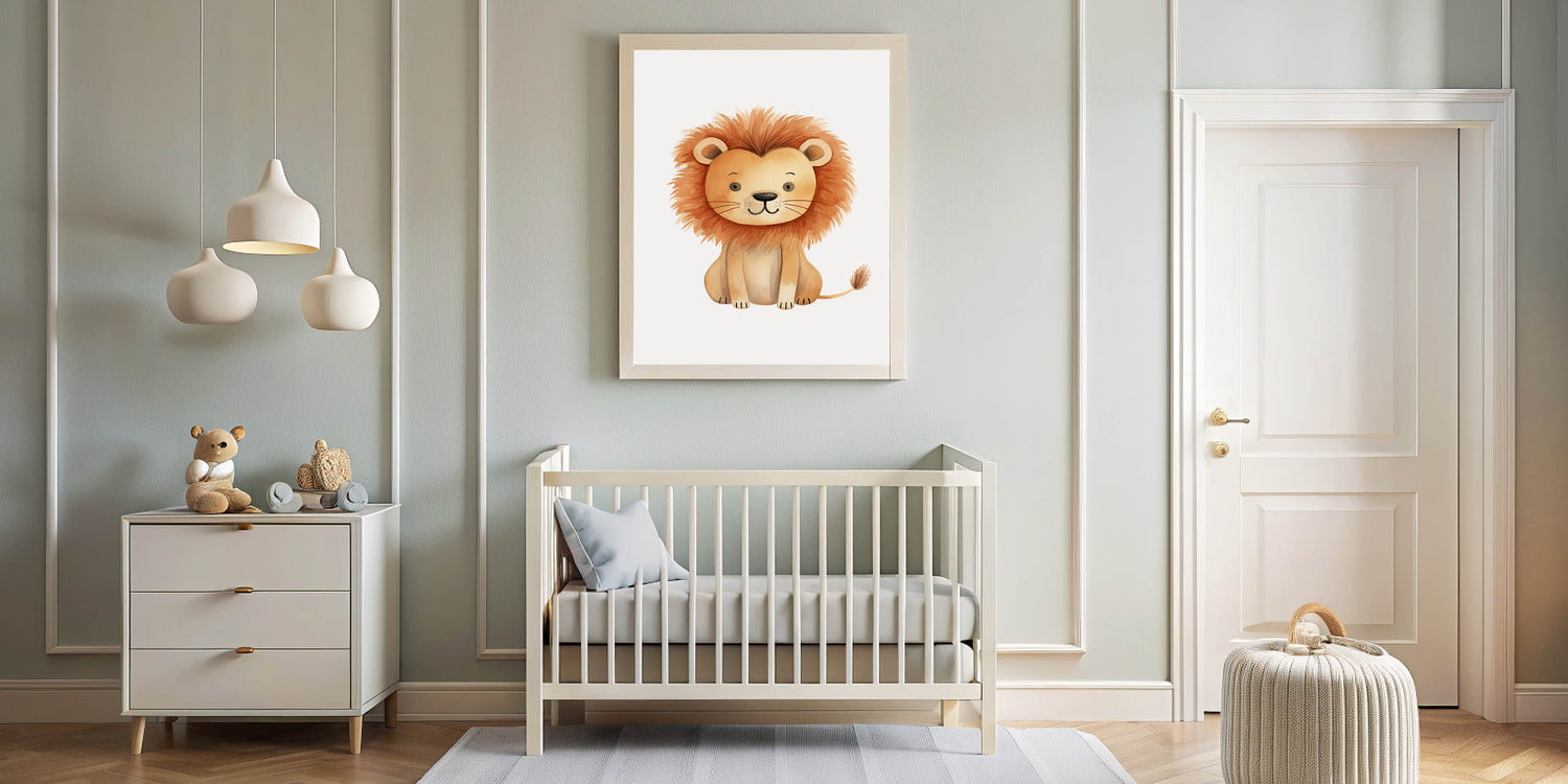 Cute Lion Nursery Wall Art - Baby Room Decor for Kids