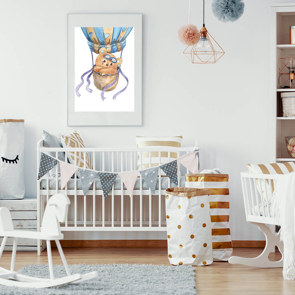 This nursery canvas print makes an excellent gift for new parents or a delightful addition to a baby’s room decor. Whether creating a sky-themed nursery or simply adding a touch of adventure, this hot air balloon bear artwork is the perfect choice.