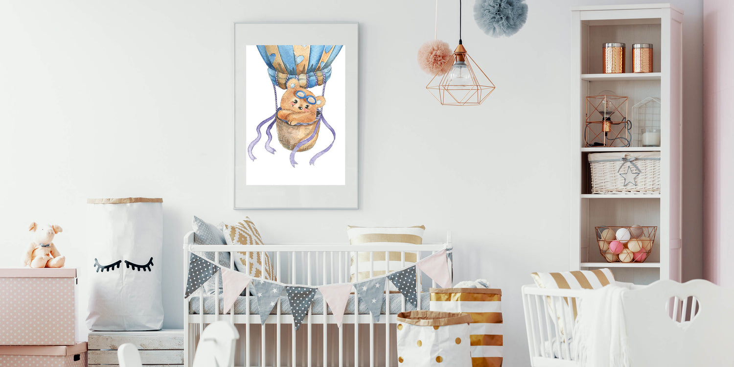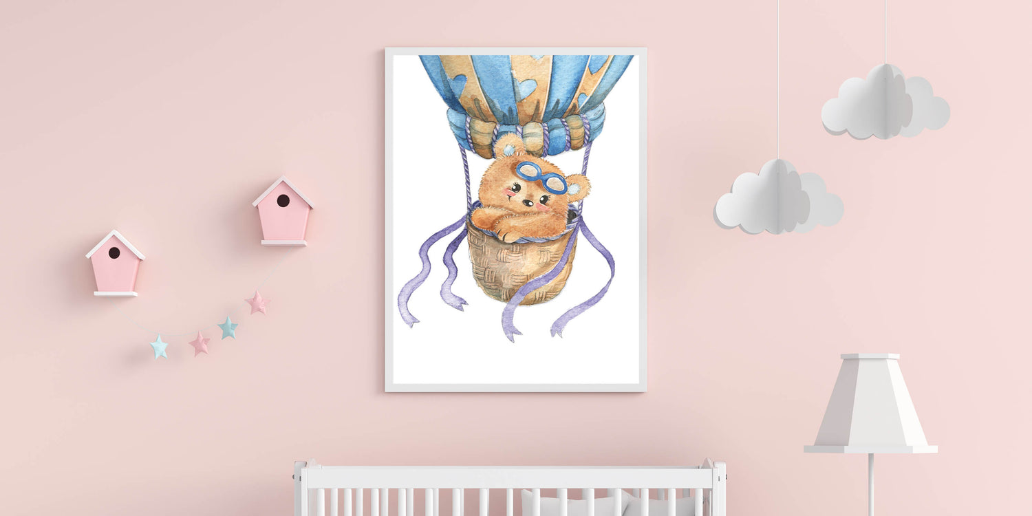Hot Air Balloon Bear - Nursery Wall Art for Baby Room Decor