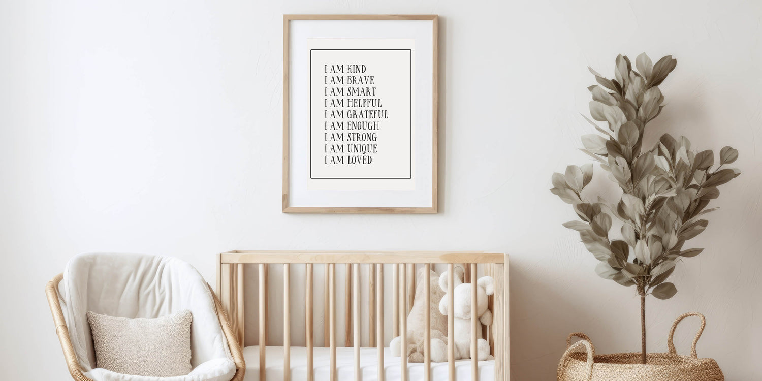 This framed nursery art is a meaningful way to uplift and inspire your little one. Whether you choose Framed Acrylic Children's Art or a Rolled Canvas Nursery Print, this affirmation print will bring positivity, love, and encouragement to your child’s space.