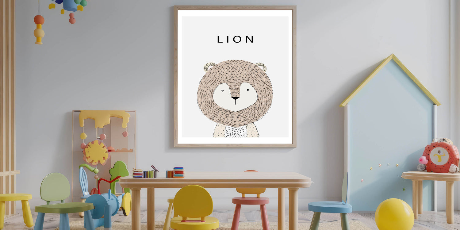 - Modern and Minimalist Design – A neutral-toned lion illustration ideal for contemporary nursery themes.