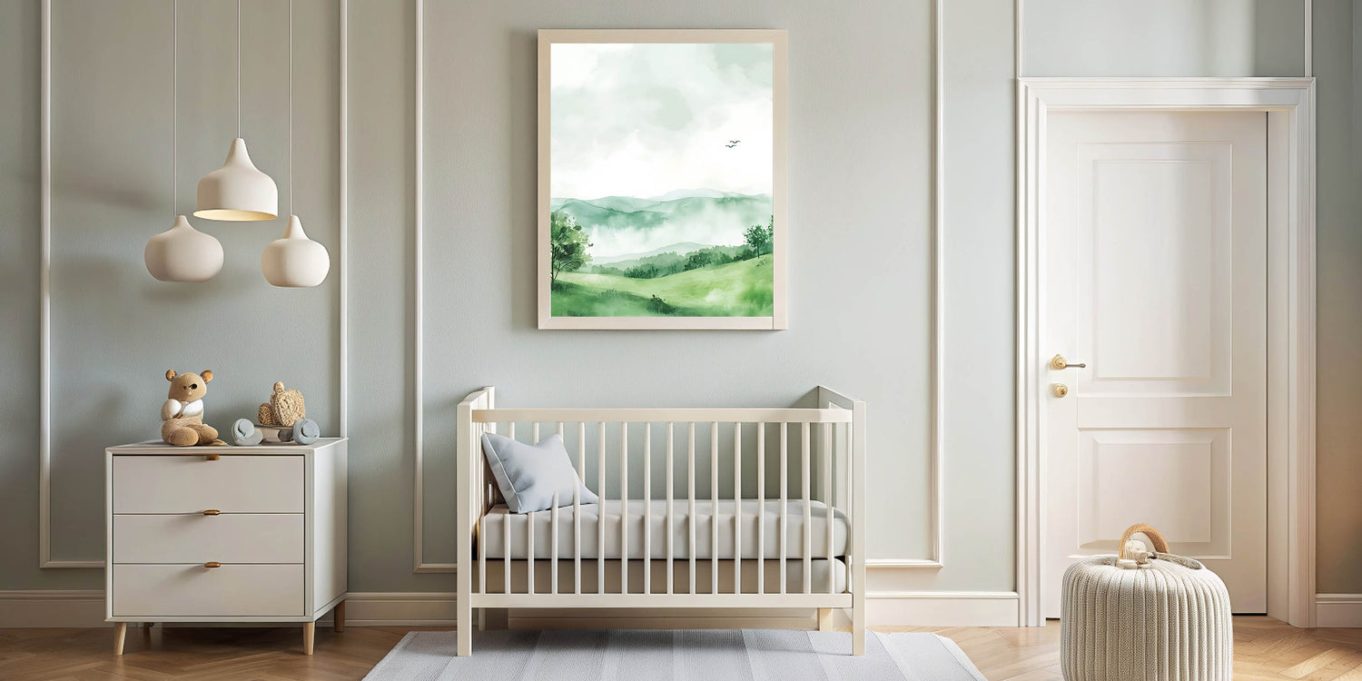 Misty Green Hills Nursery Wall Art - Baby Room & Kids Decor