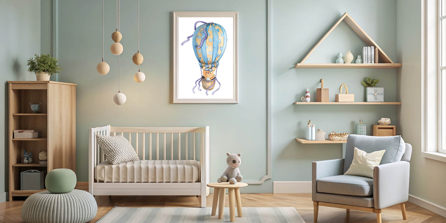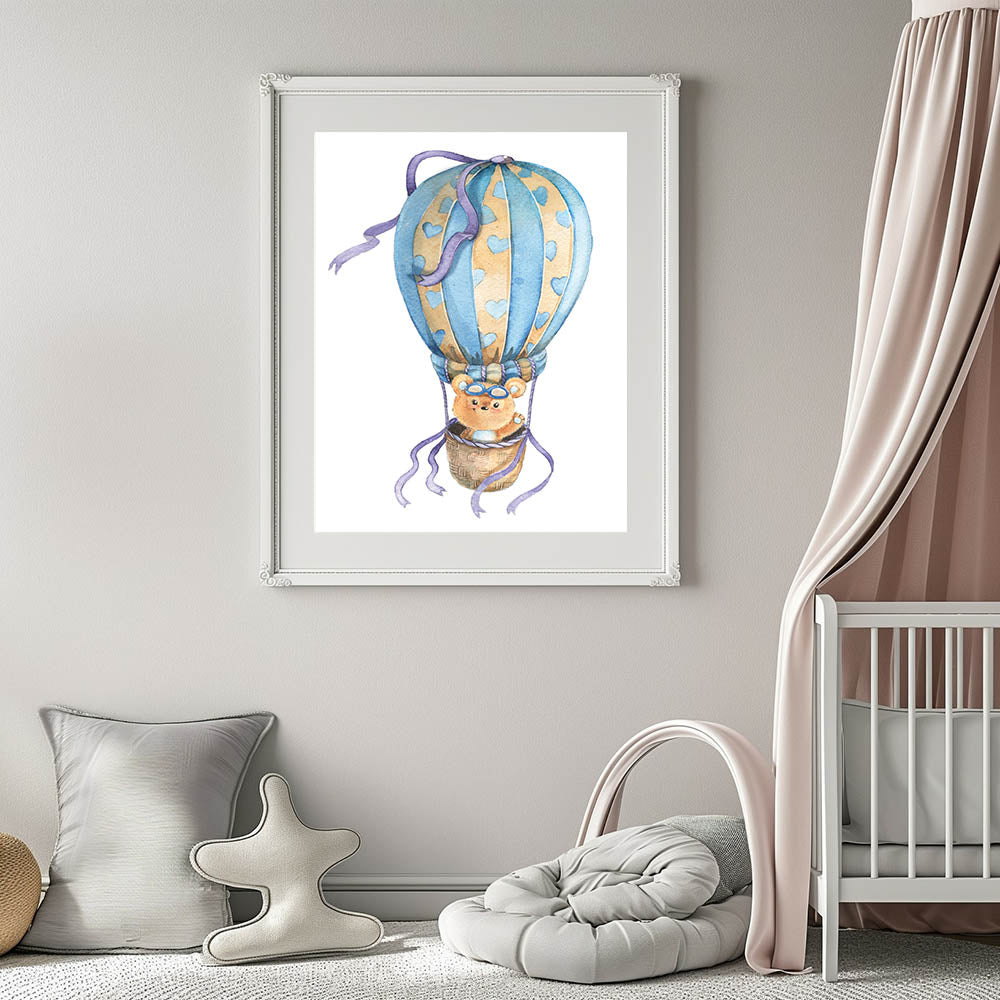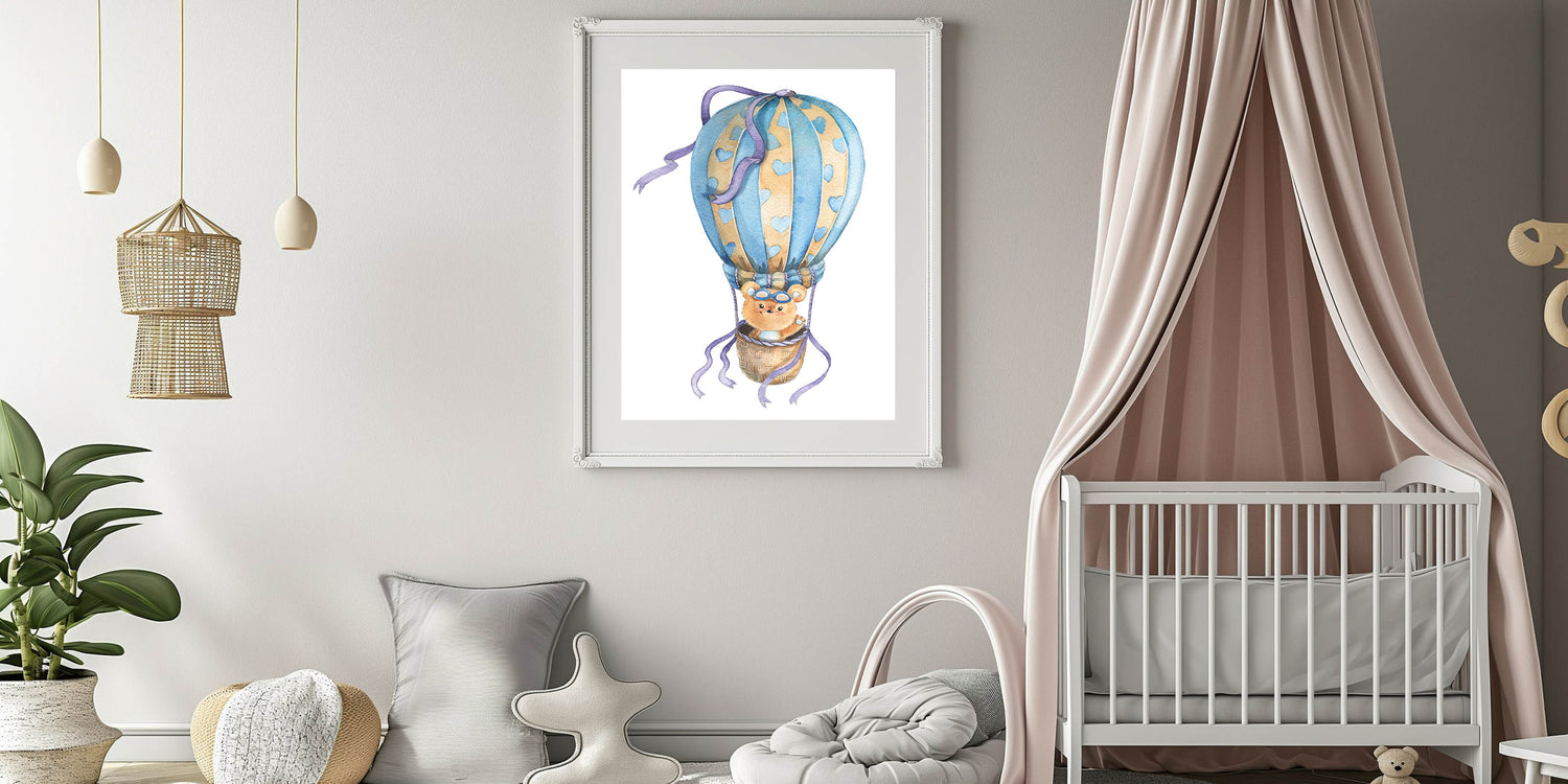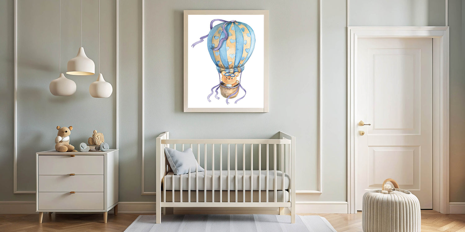 • Whimsical and Playful Design – A delightful bear and hot air balloon illustration that sparks imagination.