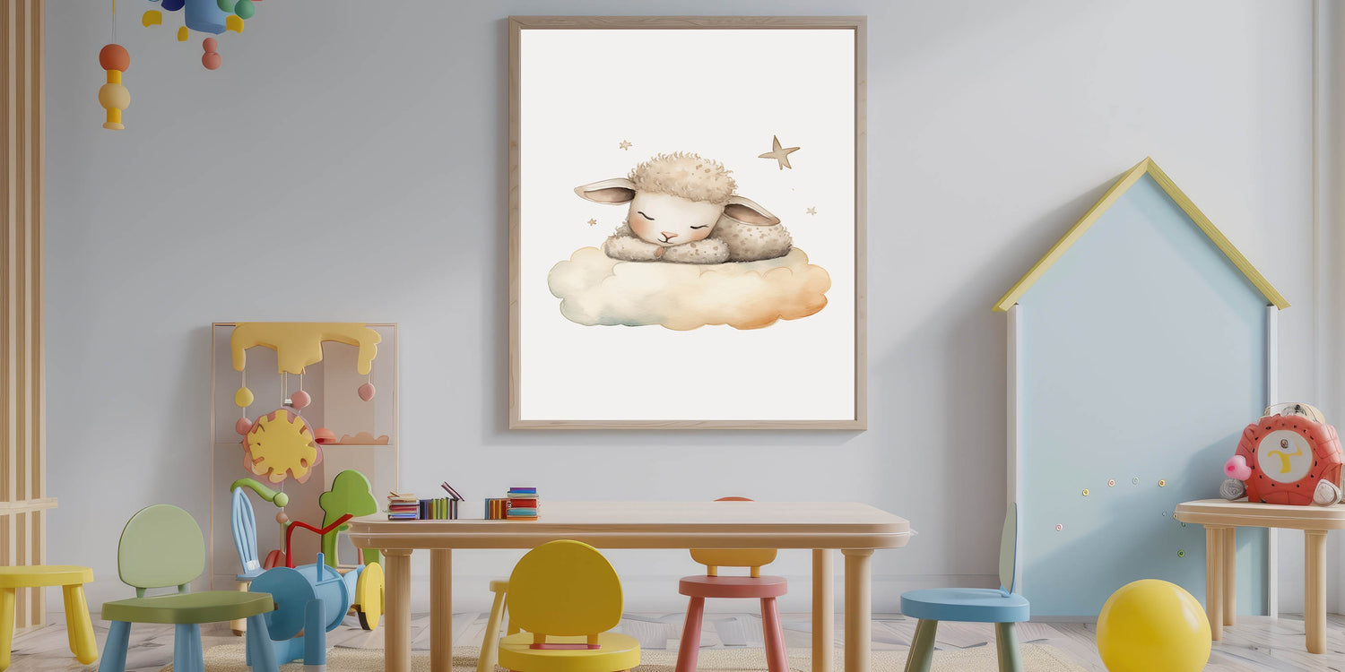 This framed nursery art is designed to create a calm and cozy ambiance, perfect for your little one’s restful space. Whether you choose Framed Acrylic Children's Art or a Rolled Canvas Nursery Print, this adorable lamb wall art is sure to bring charm to your baby’s room!