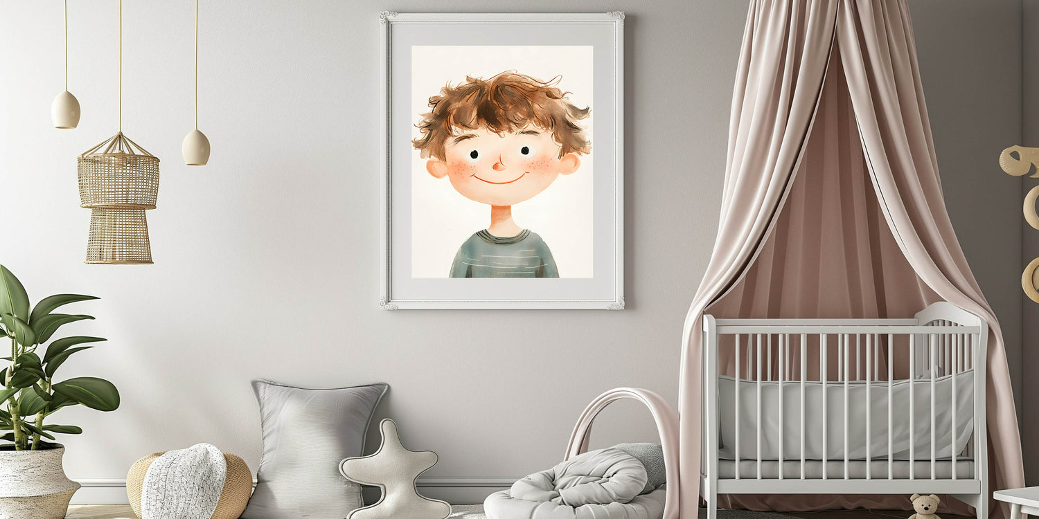 Smiling Boy Nursery Wall Art – Kids Room & Baby Room Decor