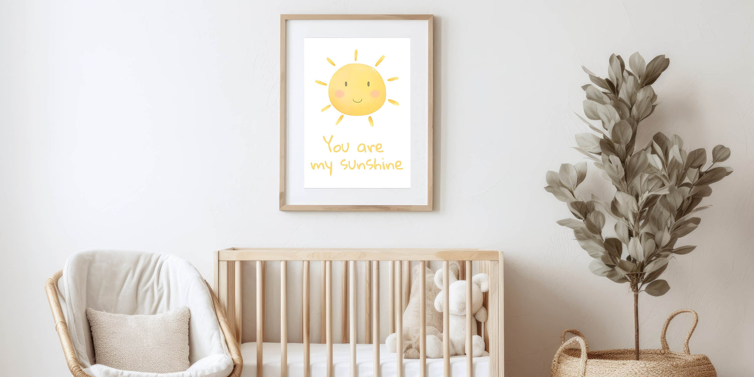 This framed nursery art makes a wonderful gift for new parents, baby showers, or as an uplifting addition to a child’s room. Whether in acrylic nursery art or canvas format, this happy sun print will bring a sense of warmth and joy to your baby’s space.