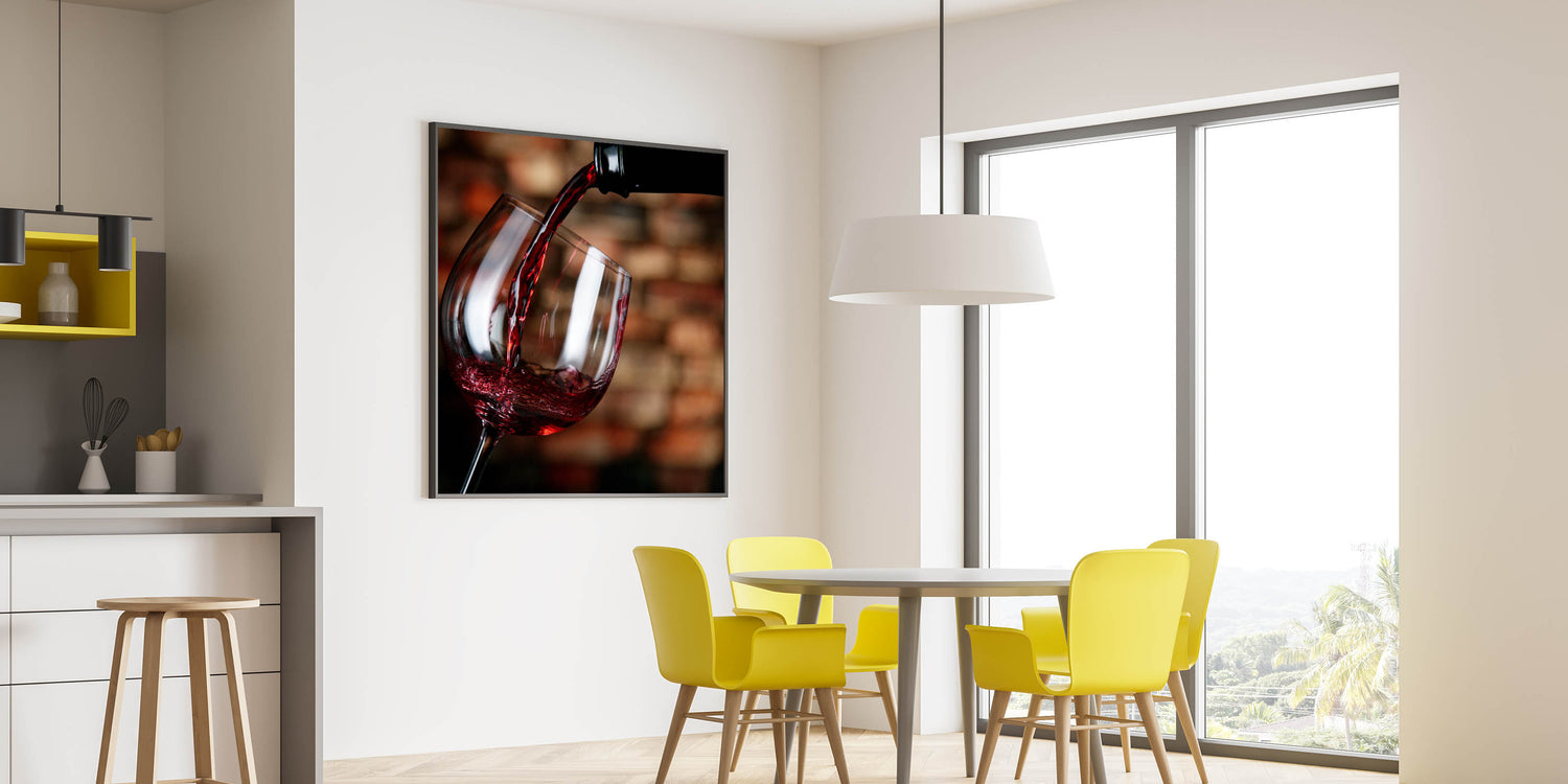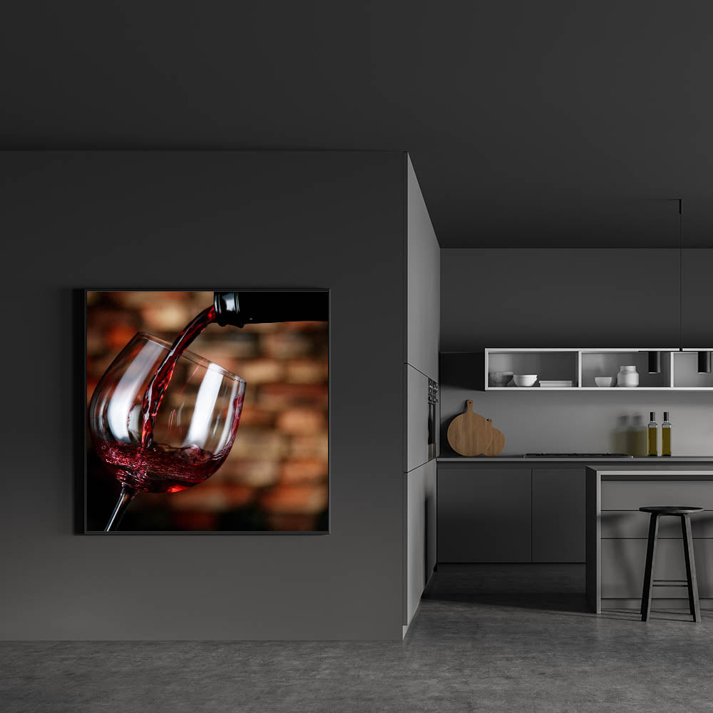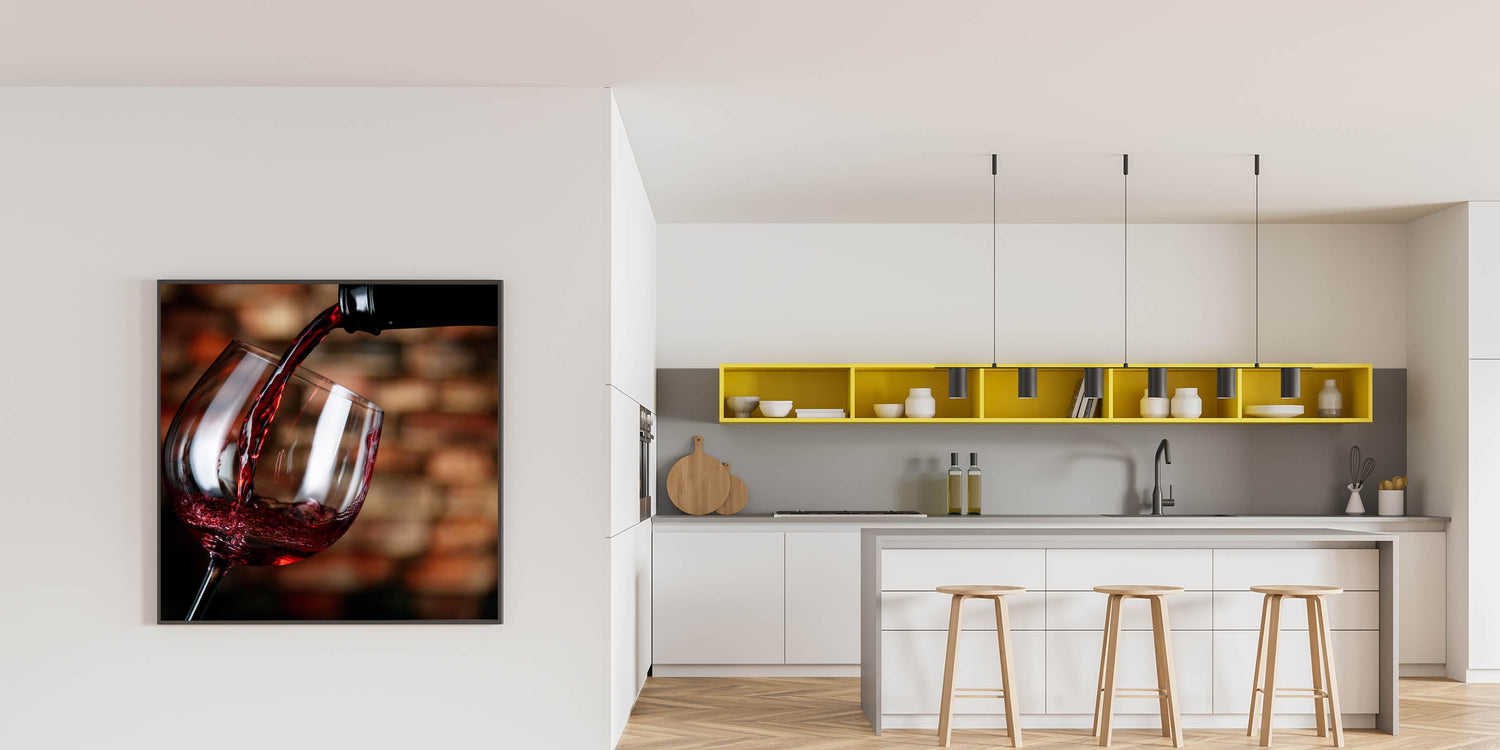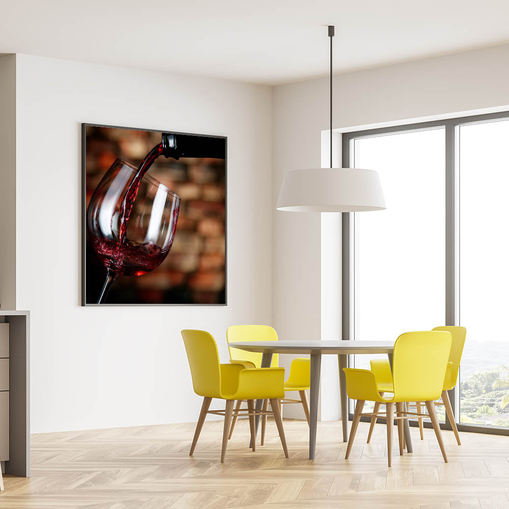 Transform your kitchen wall decor with this elegant modern kitchen art featuring a rich red wine pour against a warm, rustic backdrop. The combination of deep burgundy hues and earthy brown tones makes this a perfect centerpiece for wine lovers and those who appreciate refined aesthetics in their culinary space.