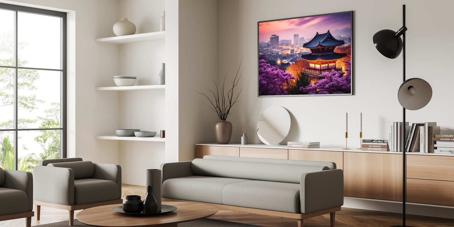 Add a touch of Korea’s rich culture and natural beauty to your space with this captivating artwork. Whether displayed in a living room, bedroom, or office, this piece offers a balance of tradition and modernity that will enhance any environment.