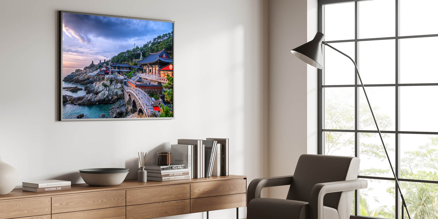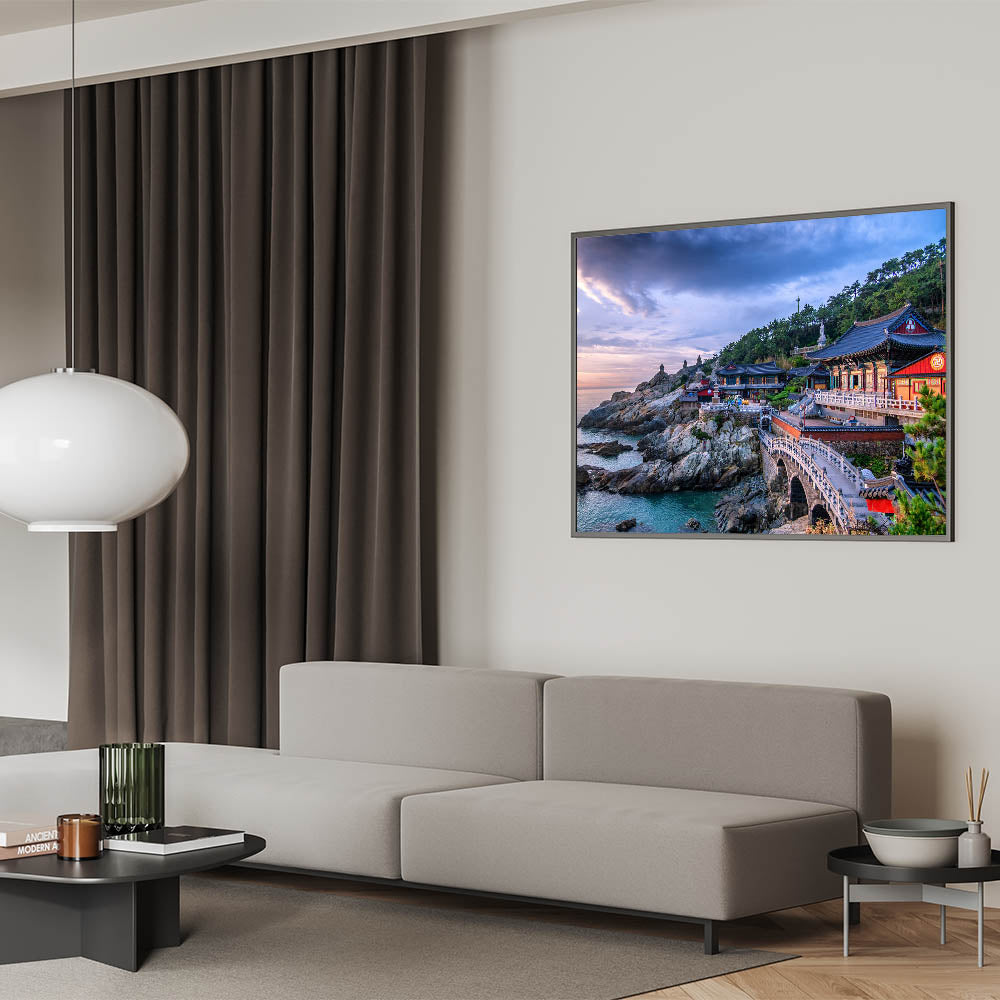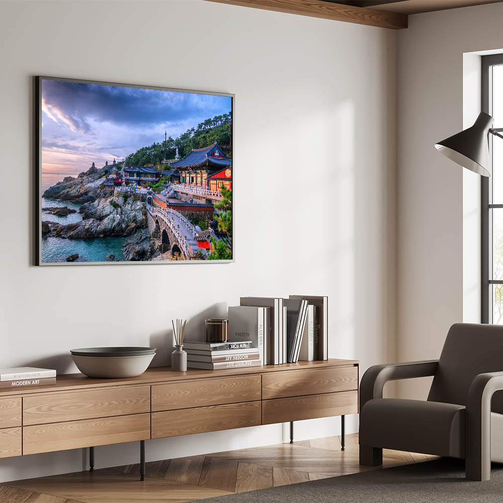 This scenic artwork is a must-have for lovers of Korean culture and landscape art. Whether displayed in your living room, office, or bedroom, the tranquil beauty of this coastal temple will elevate the ambiance of your space and serve as a stunning conversation starter.
