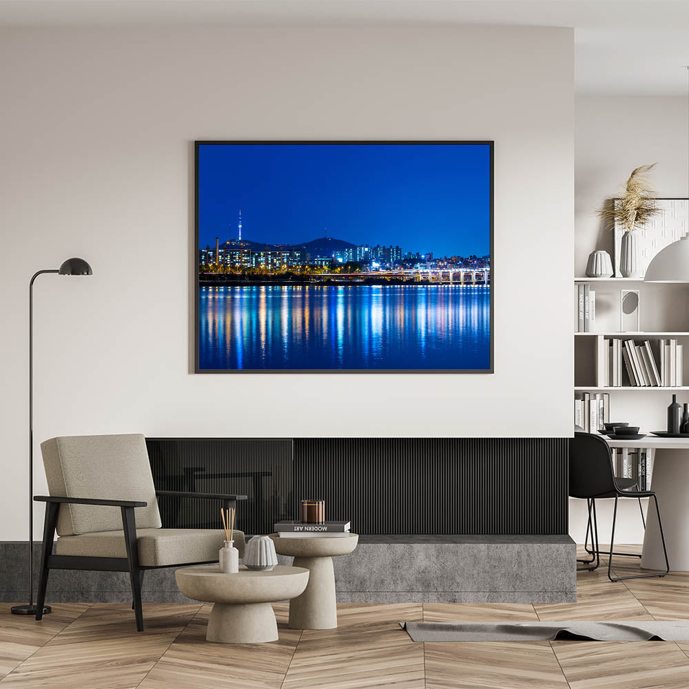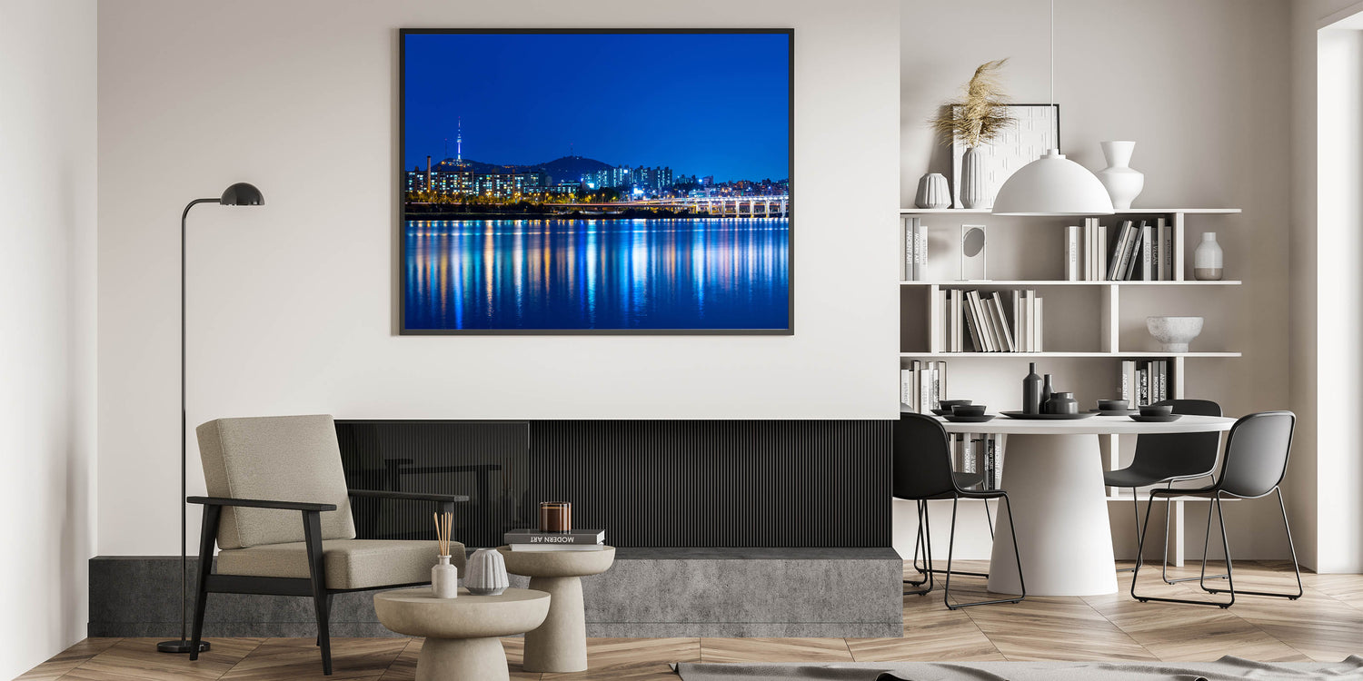 - Vivid, high-resolution print of Seoul’s skyline at night