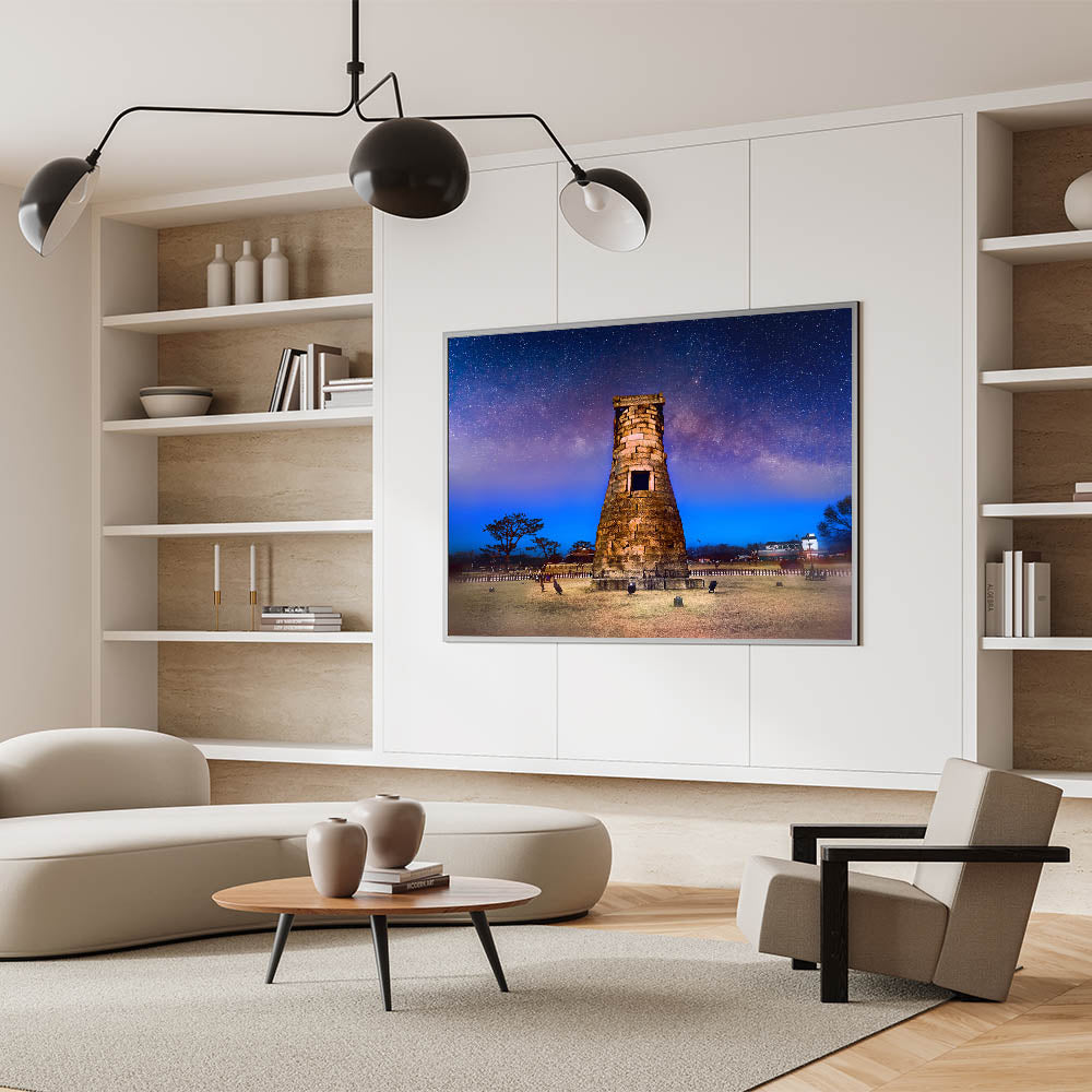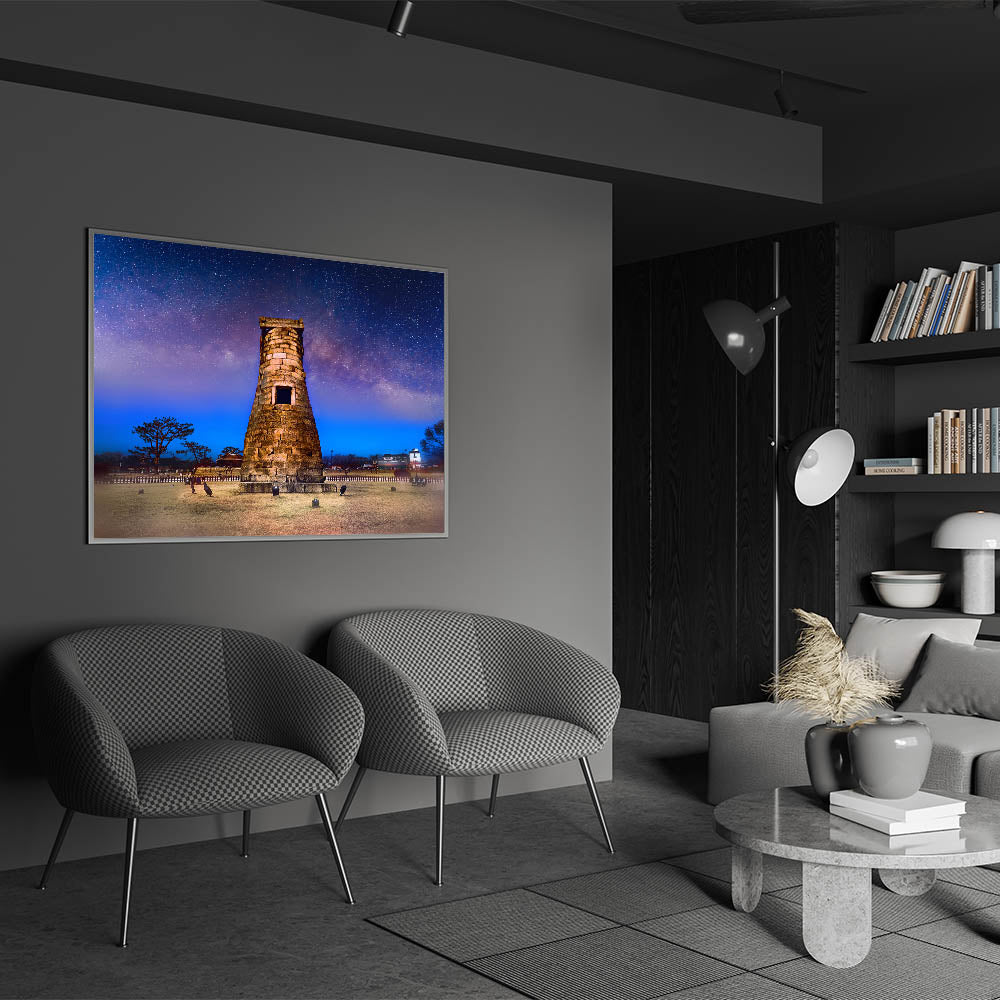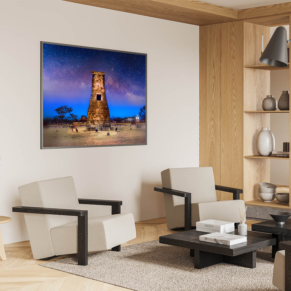 This scenic artwork not only adds a touch of Korean history to your space but also serves as a conversation piece. Whether displayed in a living room, bedroom, or office, this timeless image of Korea’s celestial night and ancient structure creates a serene and captivating atmosphere.