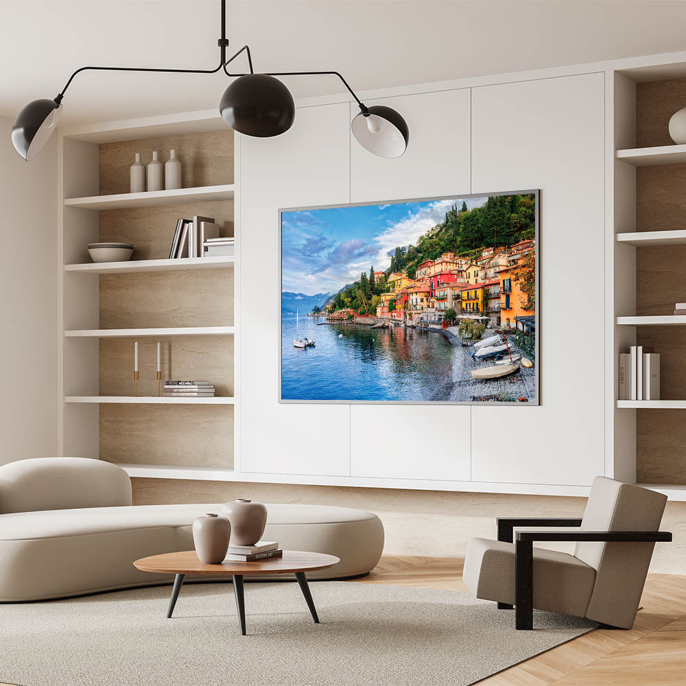 - Beautiful Lake Como art available as canvas, framed canvas, or acrylic glass.