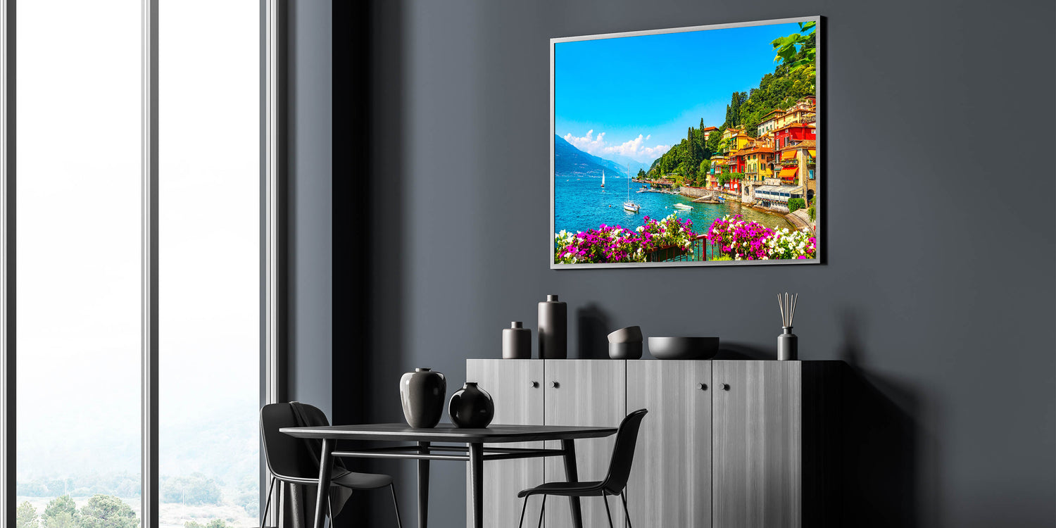 • Custom-framed Lake Como pictures, including rolled canvas and prints.