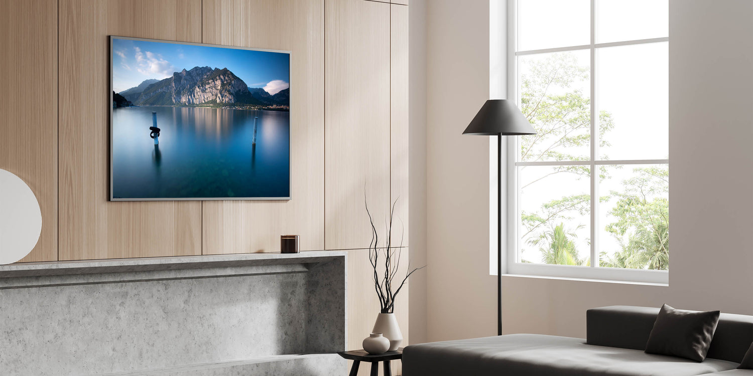 - Beautiful Lake Como art on stretched canvas, framed canvas, or acrylic glass.