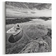 Bring a sense of calm and timeless elegance to your space with this Tranquil Lake Art piece. This stunning Black and White Art features a serene lake scene, highlighting a small boat gently tethered to the shore. The monochromatic tones add depth and sophistication, making it a perfect addition to any room's decor.