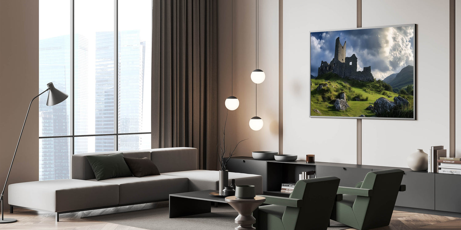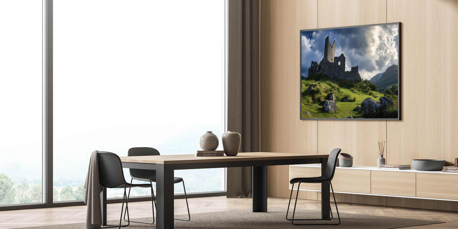 - High-quality castle prints available in stretched canvas, framed designs, and acrylic glass options.