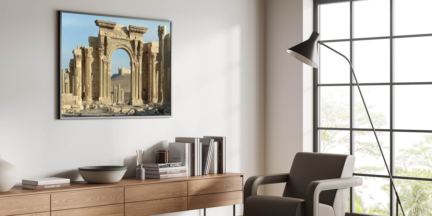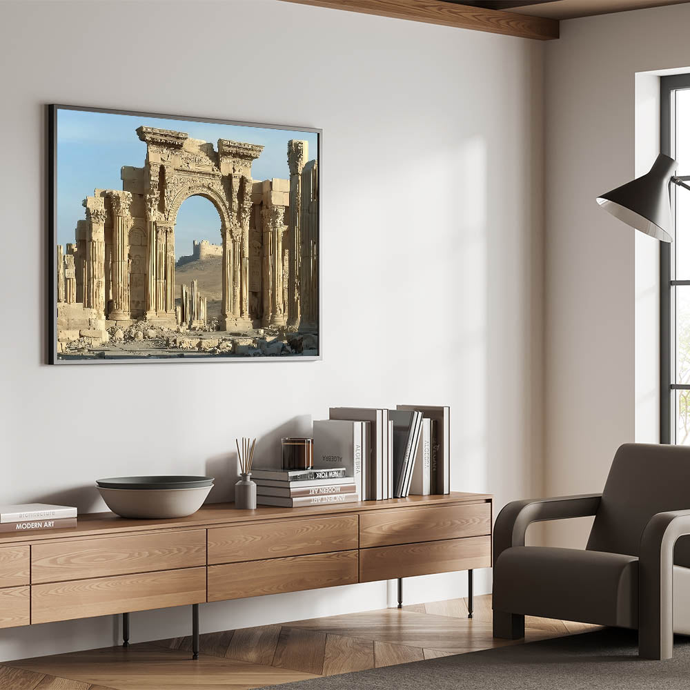 Transform your home or office with this stunning depiction of ancient ruins. Ideal for lovers of history, architecture, and scenic landscapes, this piece celebrates the timeless allure of historic structures and expansive desert vistas. Bring the elegance of ancient history into your space today!