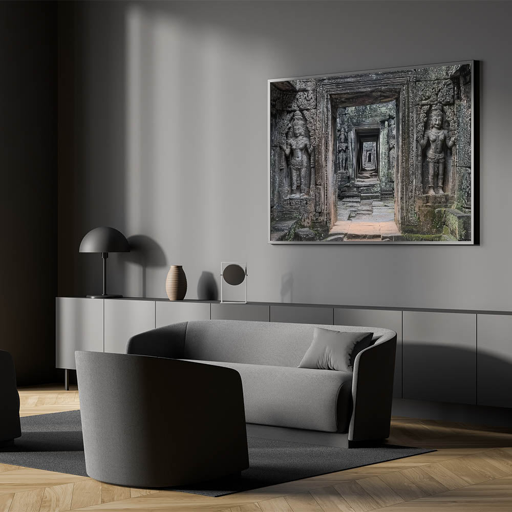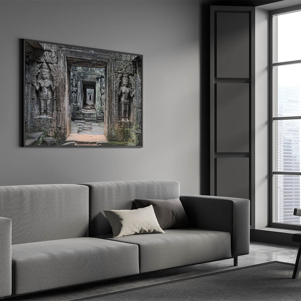 Discover the timeless beauty of historic castle prints, featuring a breathtaking stone passageway adorned with intricate carvings and sculptures. This awe-inspiring piece highlights the craftsmanship of ancient architecture, making it a perfect centerpiece for your home or office.