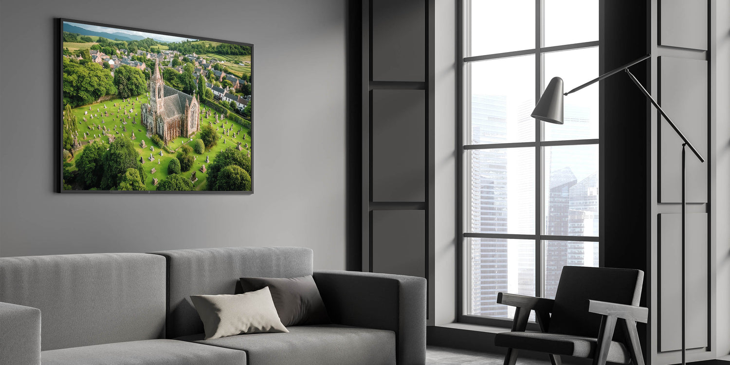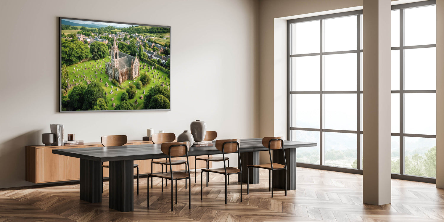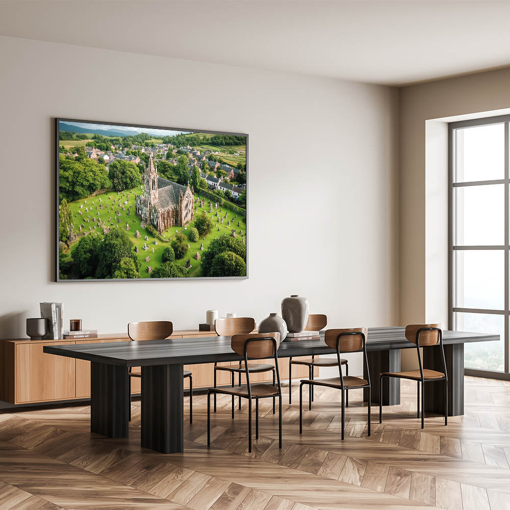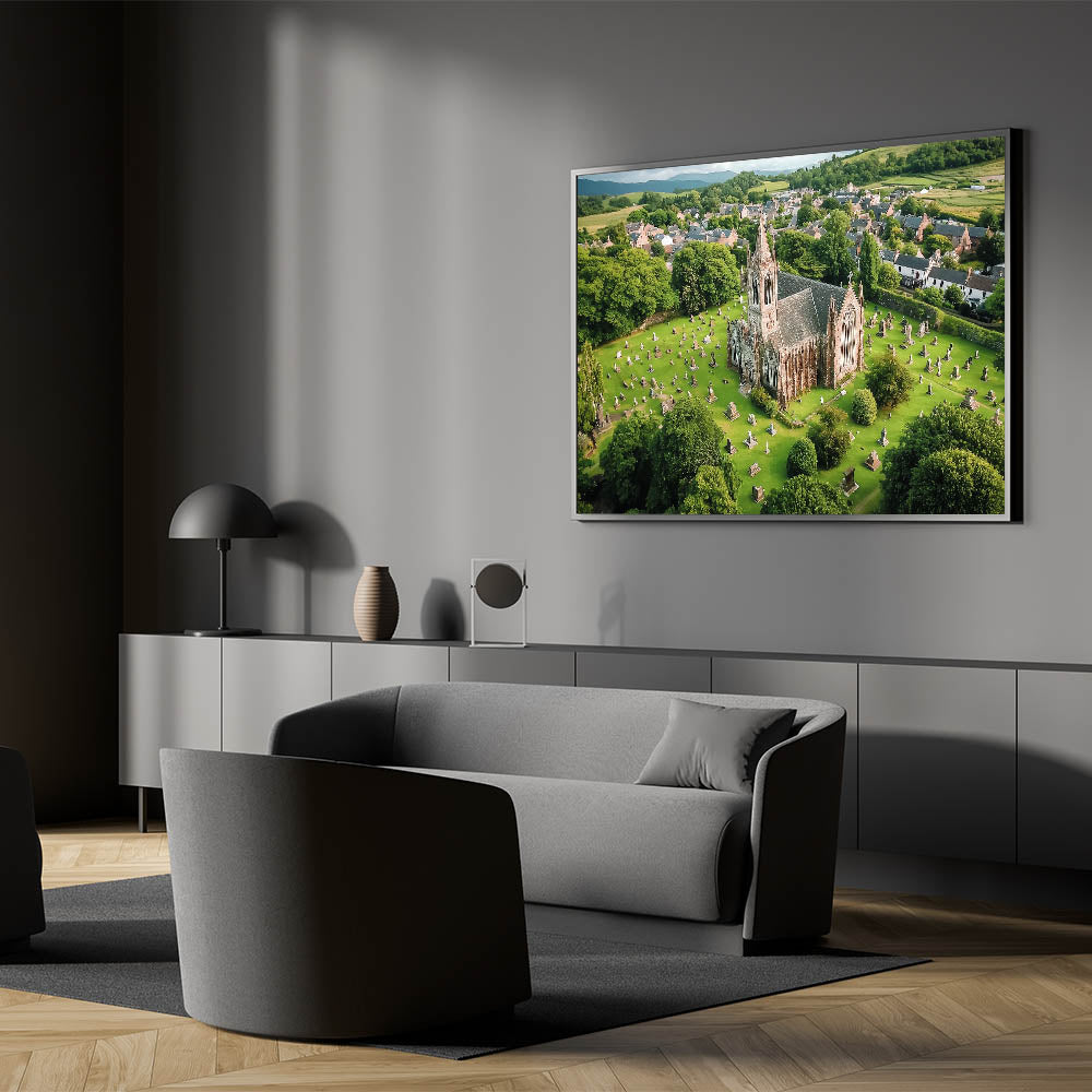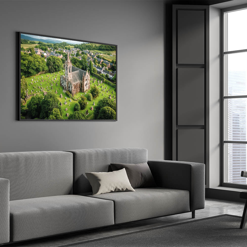 Transform your space with this elegant cathedral artwork. Ideal for lovers of history, architecture, and serene landscapes, this piece celebrates the beauty and harmony of historic landmarks and the natural world. Bring the timeless charm of this countryside cathedral into your home today!